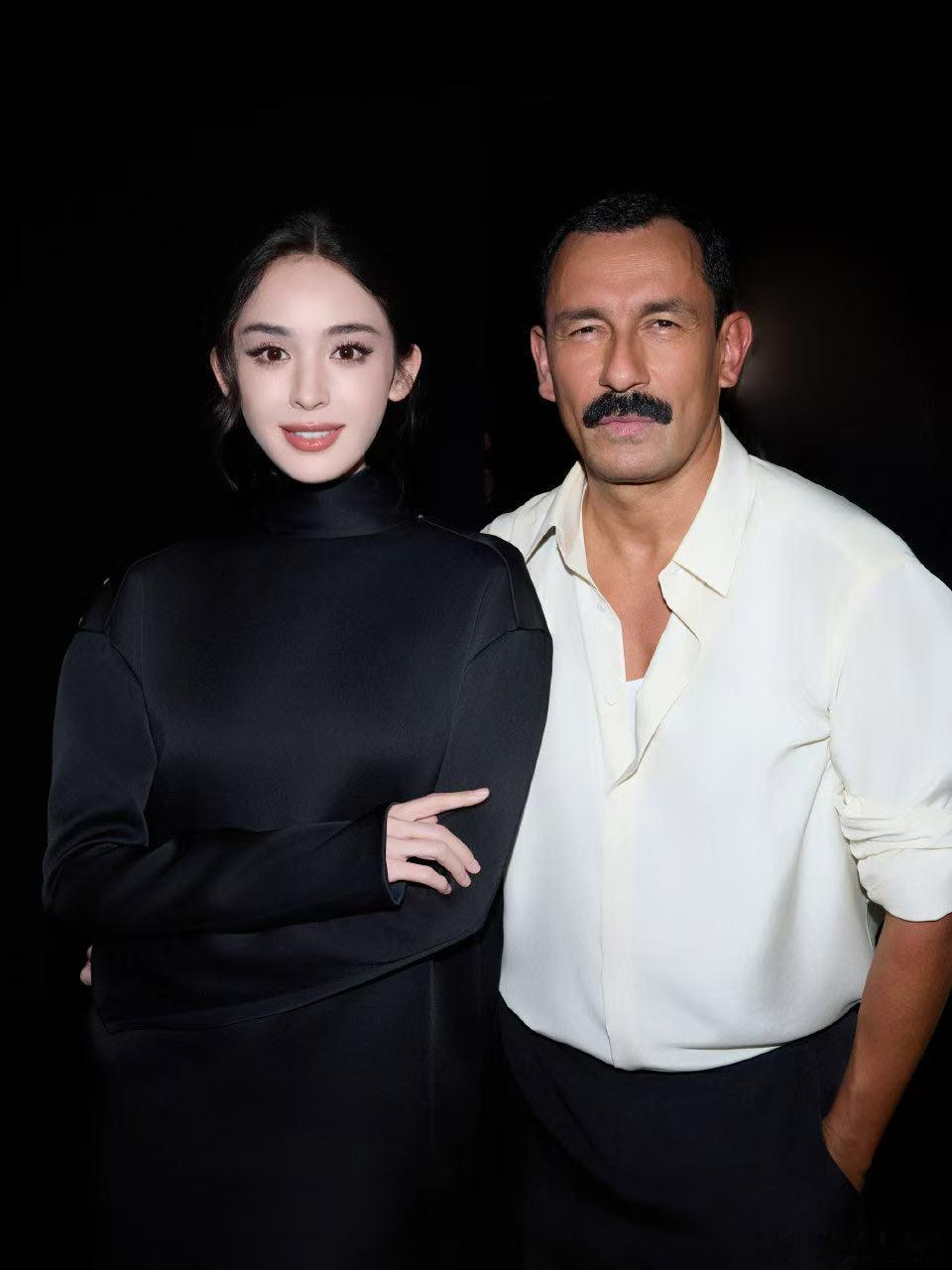 娜扎看秀与创意总监握手热聊 娜扎这一趟巴黎时装周真的是美到开挂,一袭黑裙优雅又有气场,从机场出发到秀场路透,每一张照片都像精修大片。