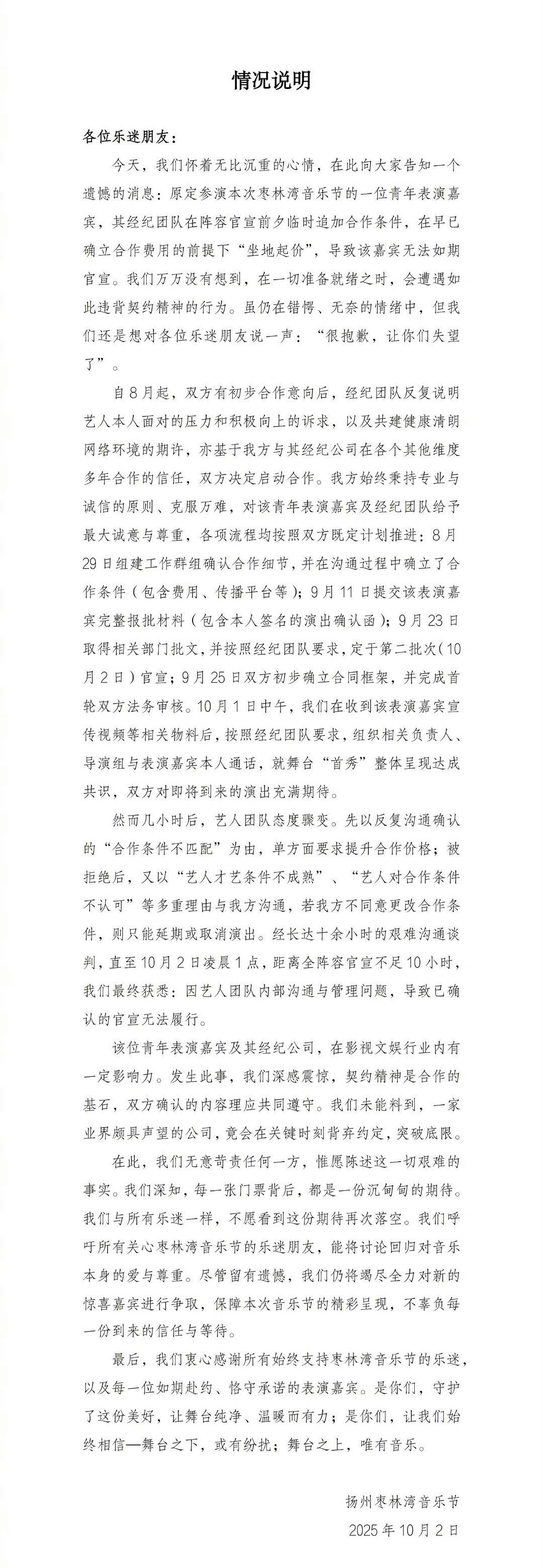 有艺人音乐节坐地起价被主办方给挂了,好奇是谁啊?