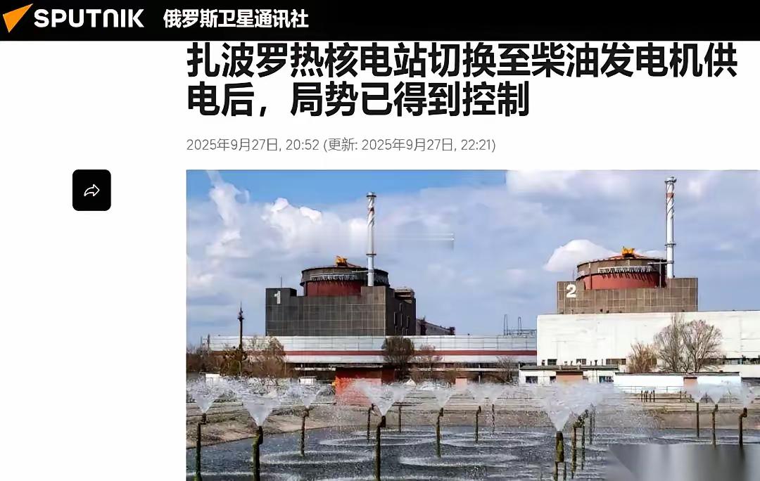 欧洲最大的那个核电站,扎波罗热,现在全靠几台柴油发电机吊着命。外面的电线,全断了。