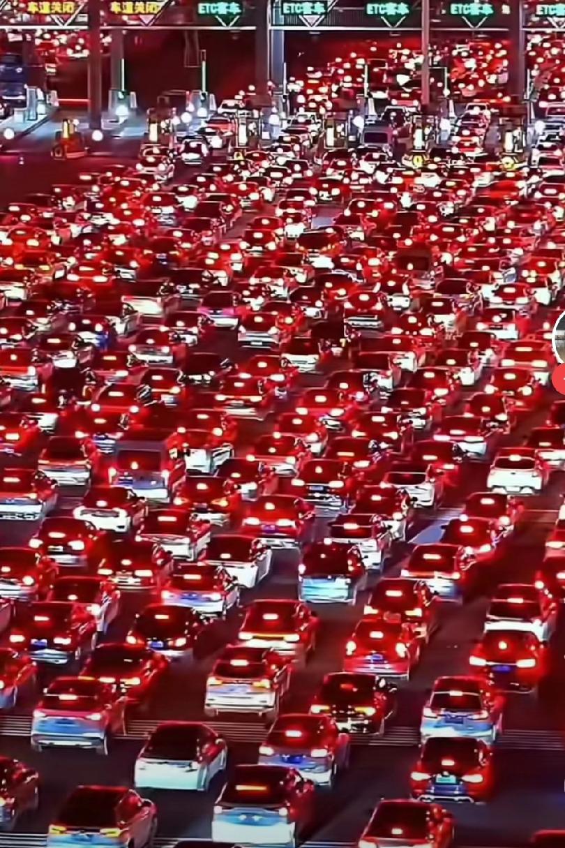 奇观,这哪是堵车,这简直是车界的万里长城! 刹车灯连成的红色光带,在夜色中无限