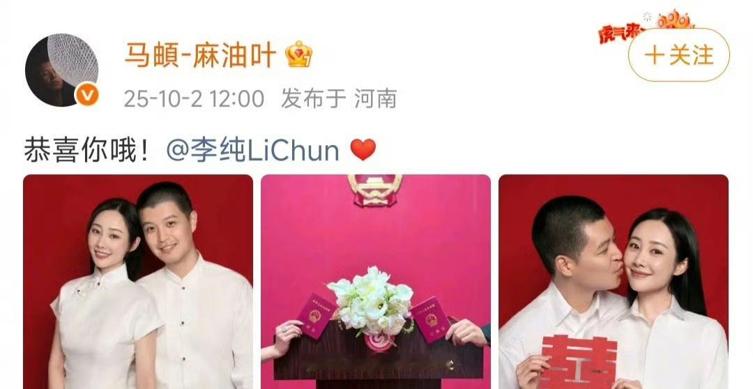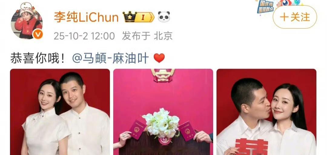 李纯马頔官宣领证结婚了,祝福两位新婚快乐🎉