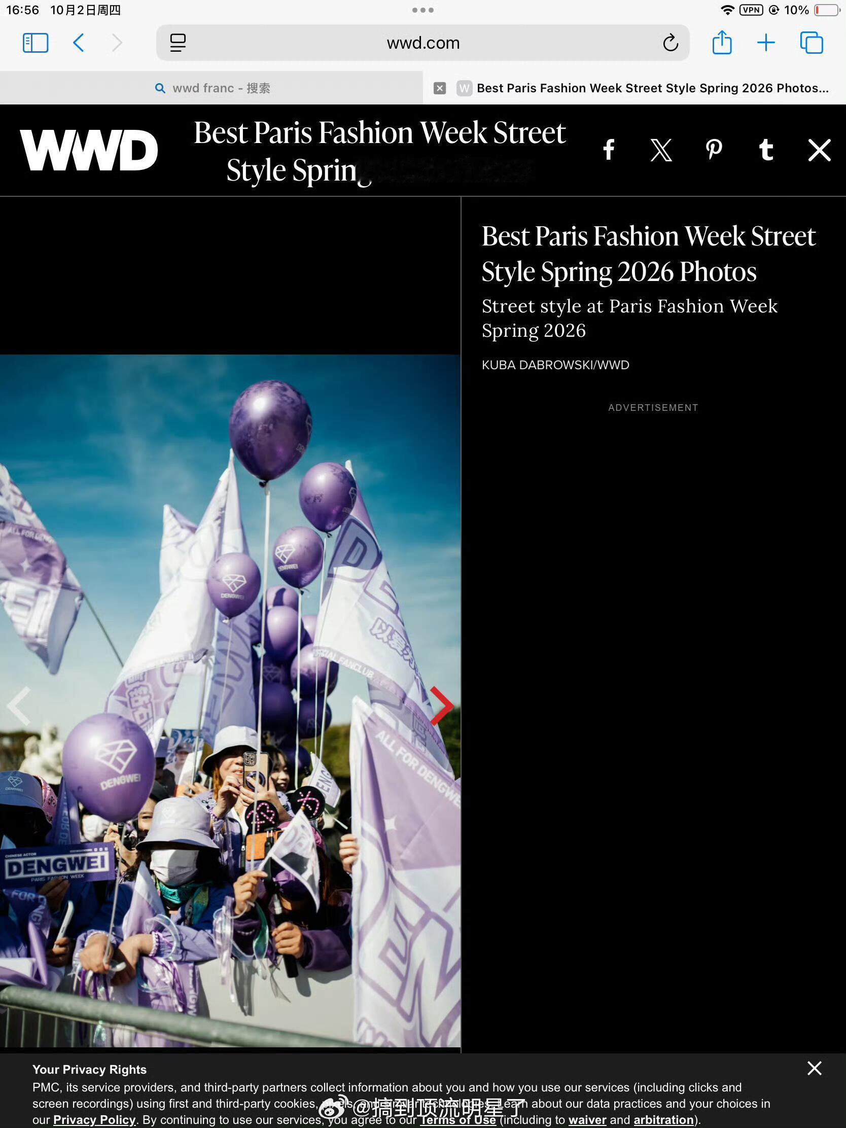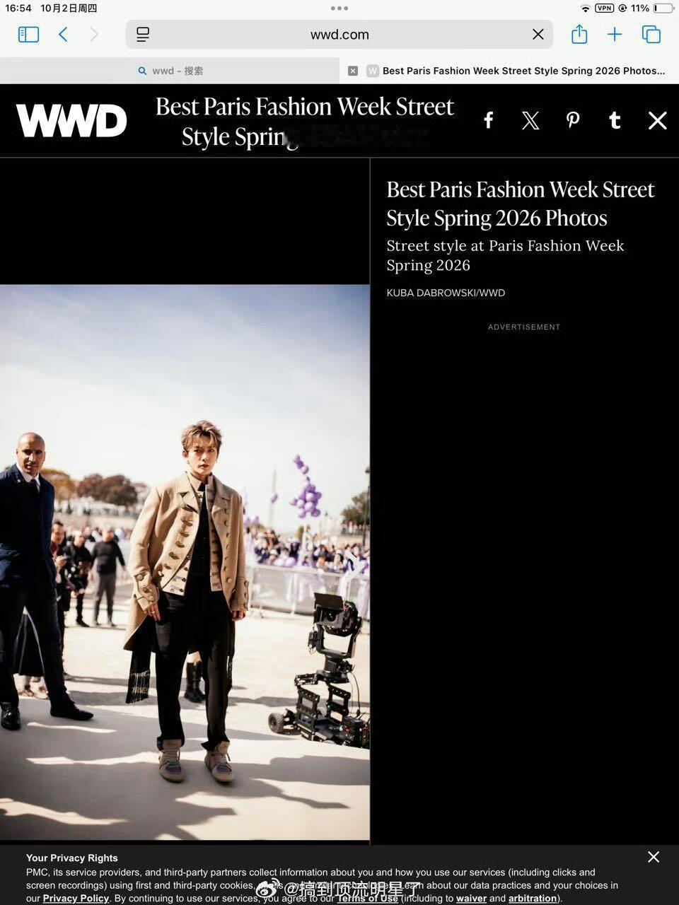 邓为带着粉丝上了全球顶级媒体WWD,邓为昨日造型最佳街拍造型之一,是唯一的中国艺人,称钻石姐姐最佳风景[打call][打call][打call]