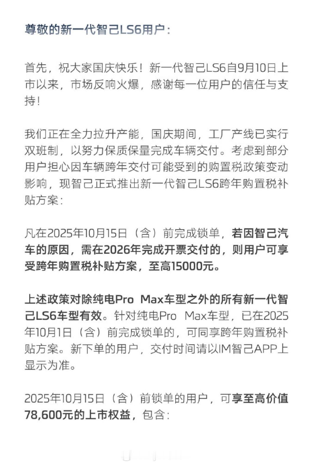 智己对新一代LS6购车用户的置换补贴兜底方案出来了!