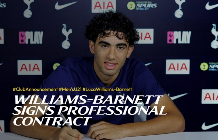 直播吧10月2日讯热刺官方宣布和小将卢卡-威廉姆斯-巴内特(LucaWilliams-Barnett )签下首份职业合同。巴内特本周三刚刚年满17周岁,他在场上司职攻击型中场。