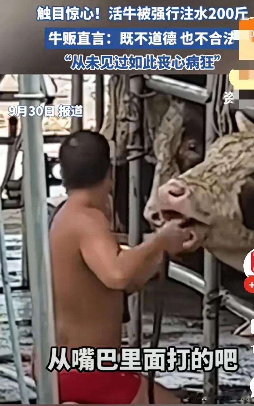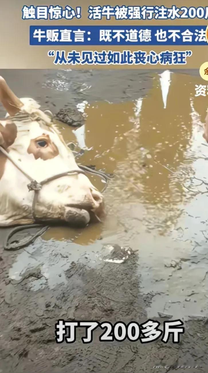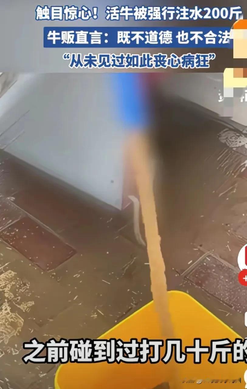 “太黑心!”男子去养牛场里收购牛,回到家发现牛少了200斤,而牛的嘴巴还在不停的往下滴水,牛贩瞬间明白了什么,这些牛被注入水了。肯定是牛场的老板知道自己要买牛,提前用水管强行给牛注入了200斤的水。 男子觉得很震惊,他之前也碰到过,但人家只是打了几十斤,没想到这个直接打了200斤,真的是太不道德了,做生意怎么可以这样,只顾自己的利益,不管别人死活,这样自己会亏很多的! 对此有网友说:之前去买活鸭,回来一杀发现食囊里都是小石头,为了赚点钱坑害顾客,最终坑的只是他自己罢了! 在农村也确实有遇到卖猪,会提前大晚上的给猪喂食,让猪吃饱了多点秤,但不会喂太多,因为商贩也会看,喂太饱很明显的,人家也会有意见! 但这种直接给牛注200斤的水还是第一次听说,200斤啊,那得多少桶水,牛当时多难受啊!为了自己的利益耍点手段可以理解,但这也太夸张了吧,一头牛200斤,那得亏多少钱,何况老板也不可能只买一头牛,这下可真的亏大了! 这种情况可以不可以去告卖牛的呢?这属于非法盈利了吧! (信息来源:直播南阳,侵删[祈祷])