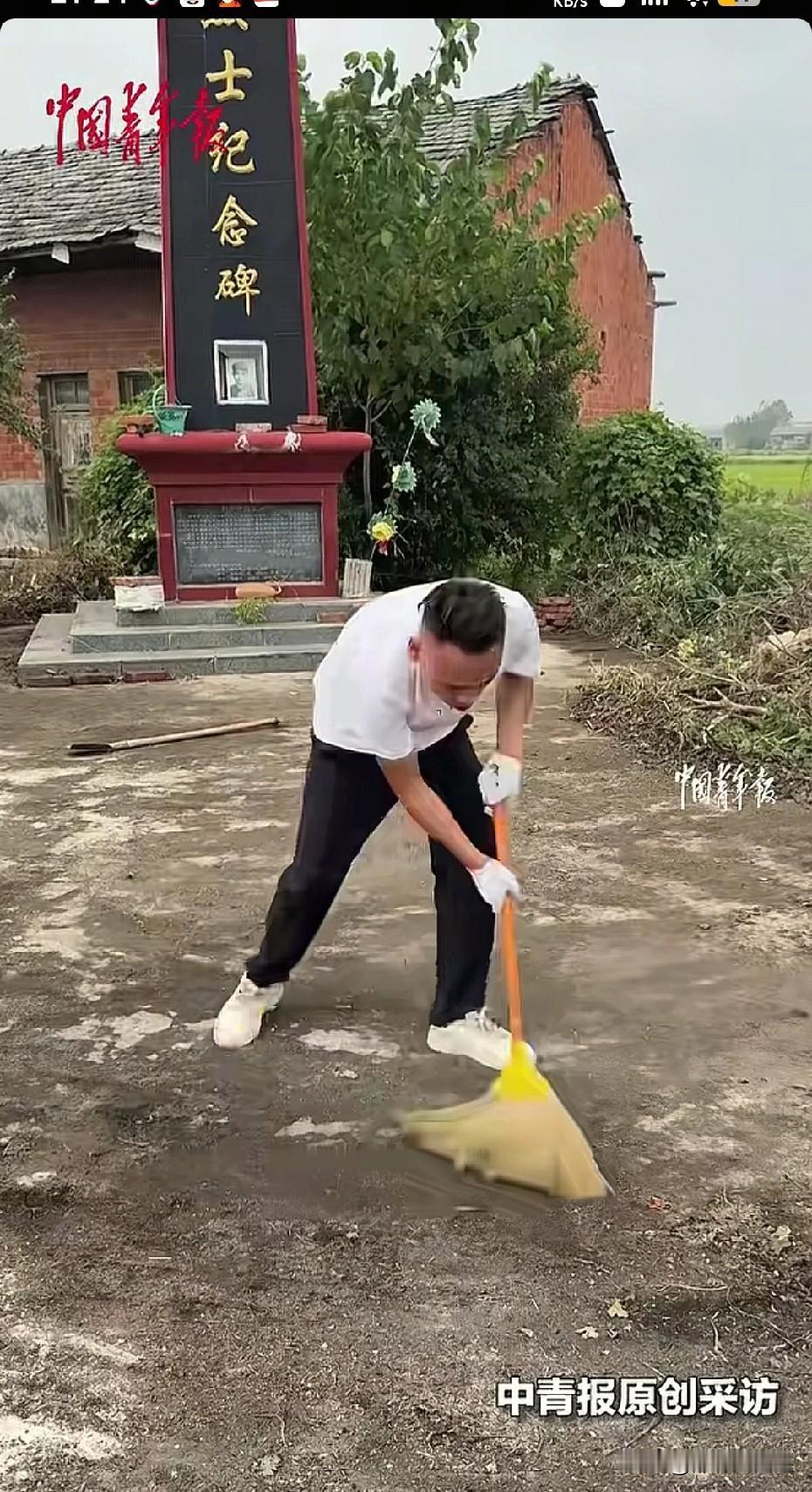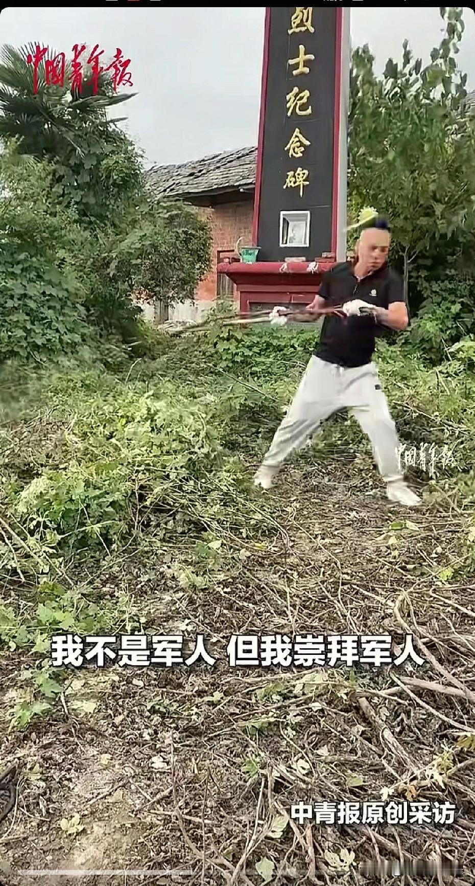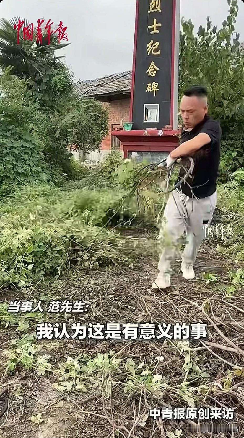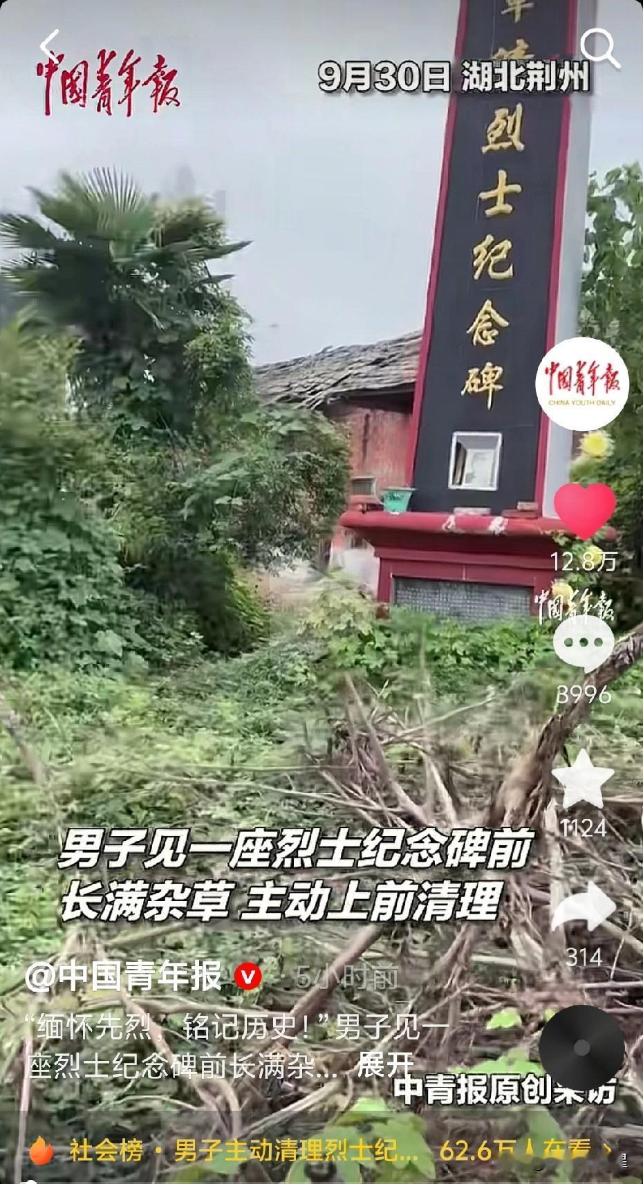 家人们,谁懂啊?湖北一小伙见一烈士纪念碑前长满杂草就主动清理,然而就是这样正能量