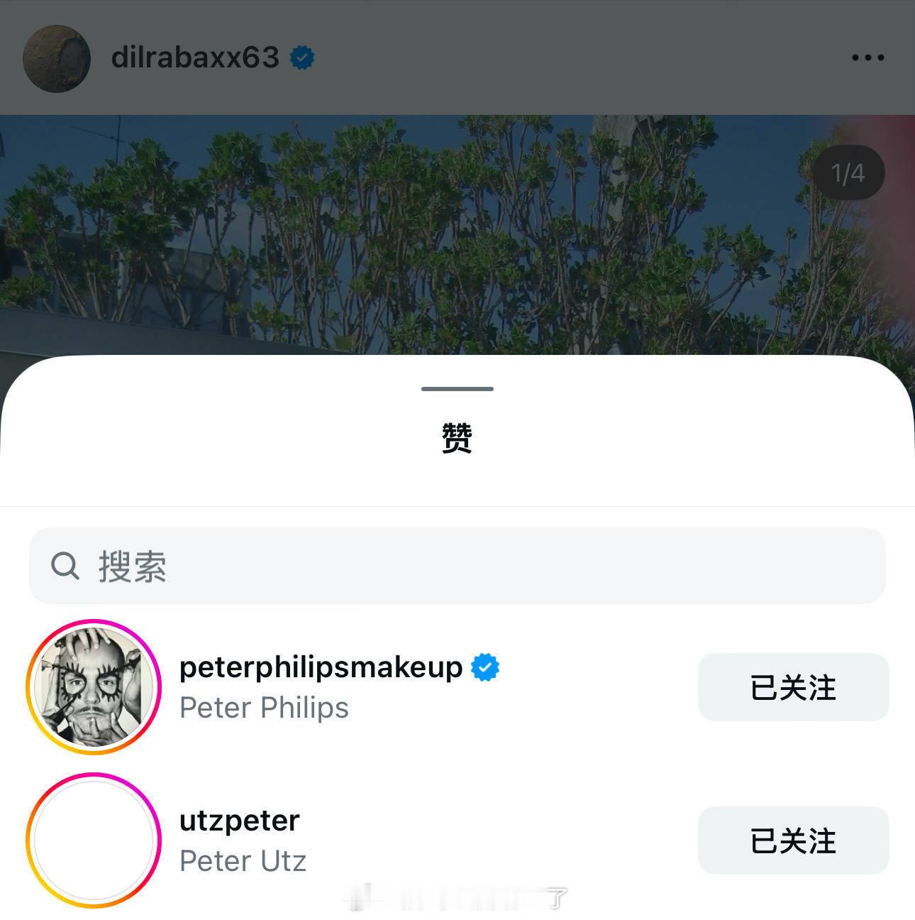 迪丽热巴IG更新啦, 迪奥全球公关总监Peter Utz点赞并评论了该条贴文,Dior彩妆创意与形象总监Peter Philips点赞了该条贴文!