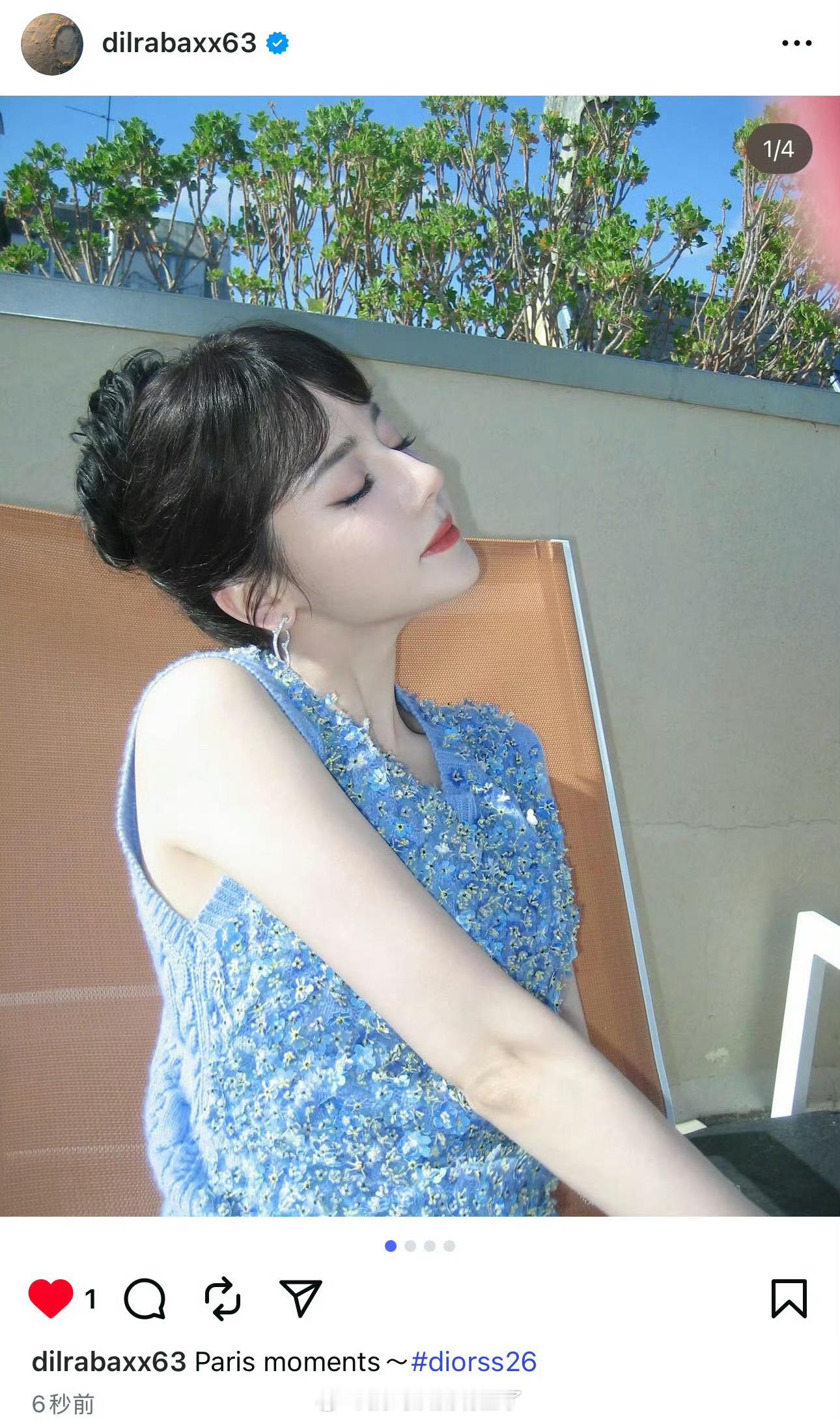 迪丽热巴IG更新啦,迪奥全球公关总监PeterUtz点赞并评论了该条贴文,D