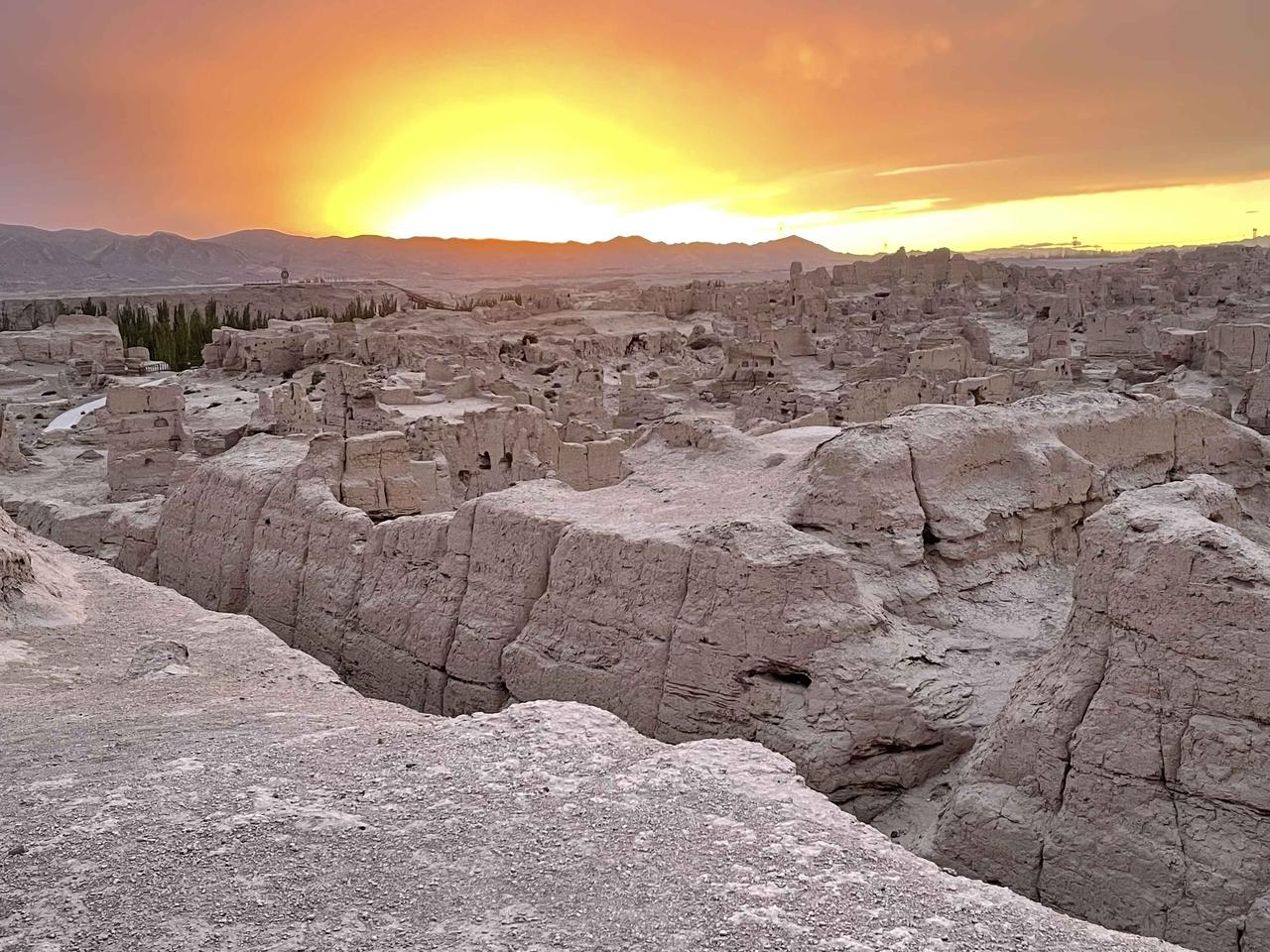 假日新疆(23)交河故城:到达交河故城时近傍晚,最后在晚霞与灯光的映衬下走出景区!交河故城,唐西域安西都护府所在地,如今是一片废墟的震撼!风景皆在照片!!