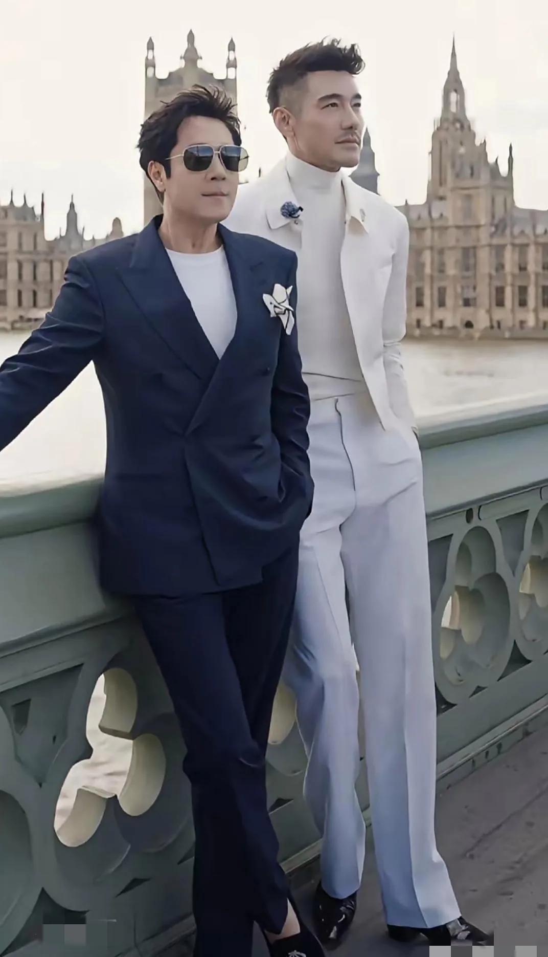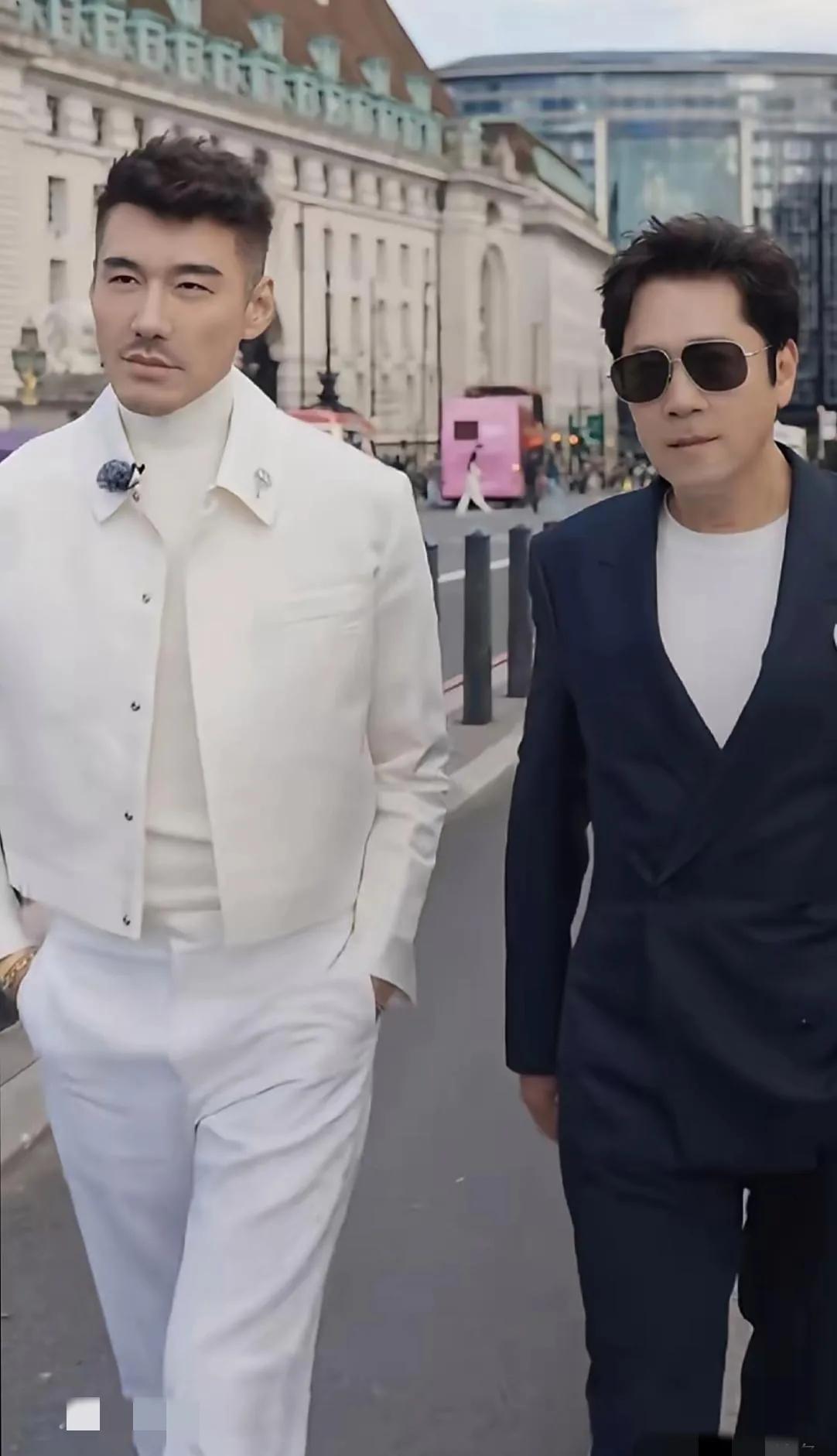 胡兵穿十厘米厚底靴,蔡国庆踩平底皮鞋,站一块儿却像俩兄弟。 不是身高差消失了,是