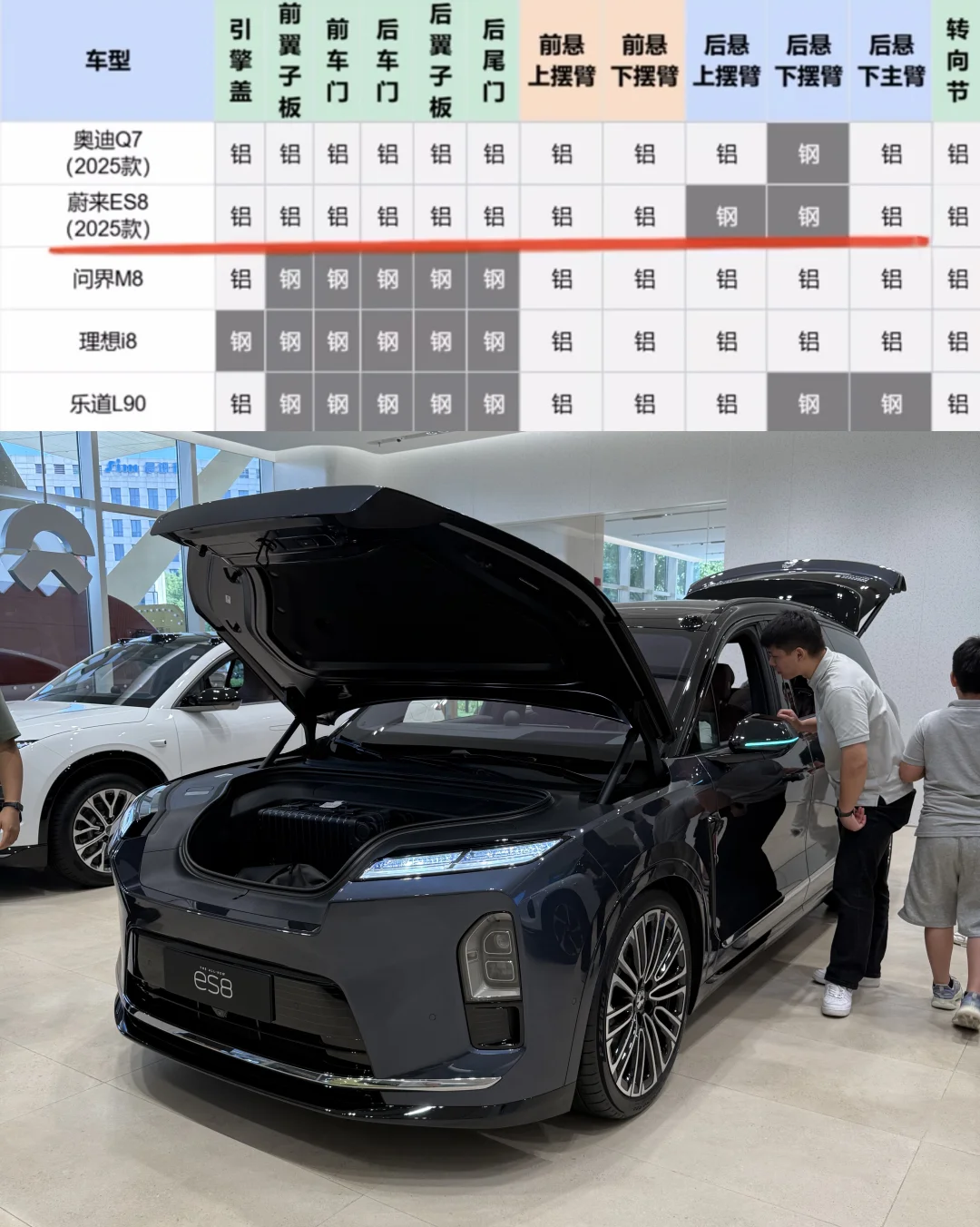 斌哥说 ES8 用铝下降了,测下来,车身还是全铝啊…