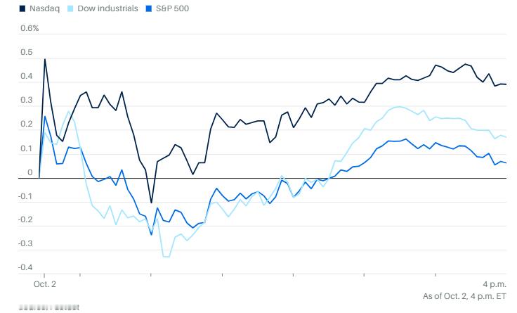周四随着政府关门进入第二天, 财政部长斯科特·贝森特警告,关门可能“冲击经济增长”。但美国股市再创新高。道琼斯工业平均指数上涨79点,涨幅0.2%。标普500指数上涨0.1%。纳斯达克综合指数上涨0.4%。标普和纳斯达克今年都创下第30次收盘新高,道指则创下第10次。