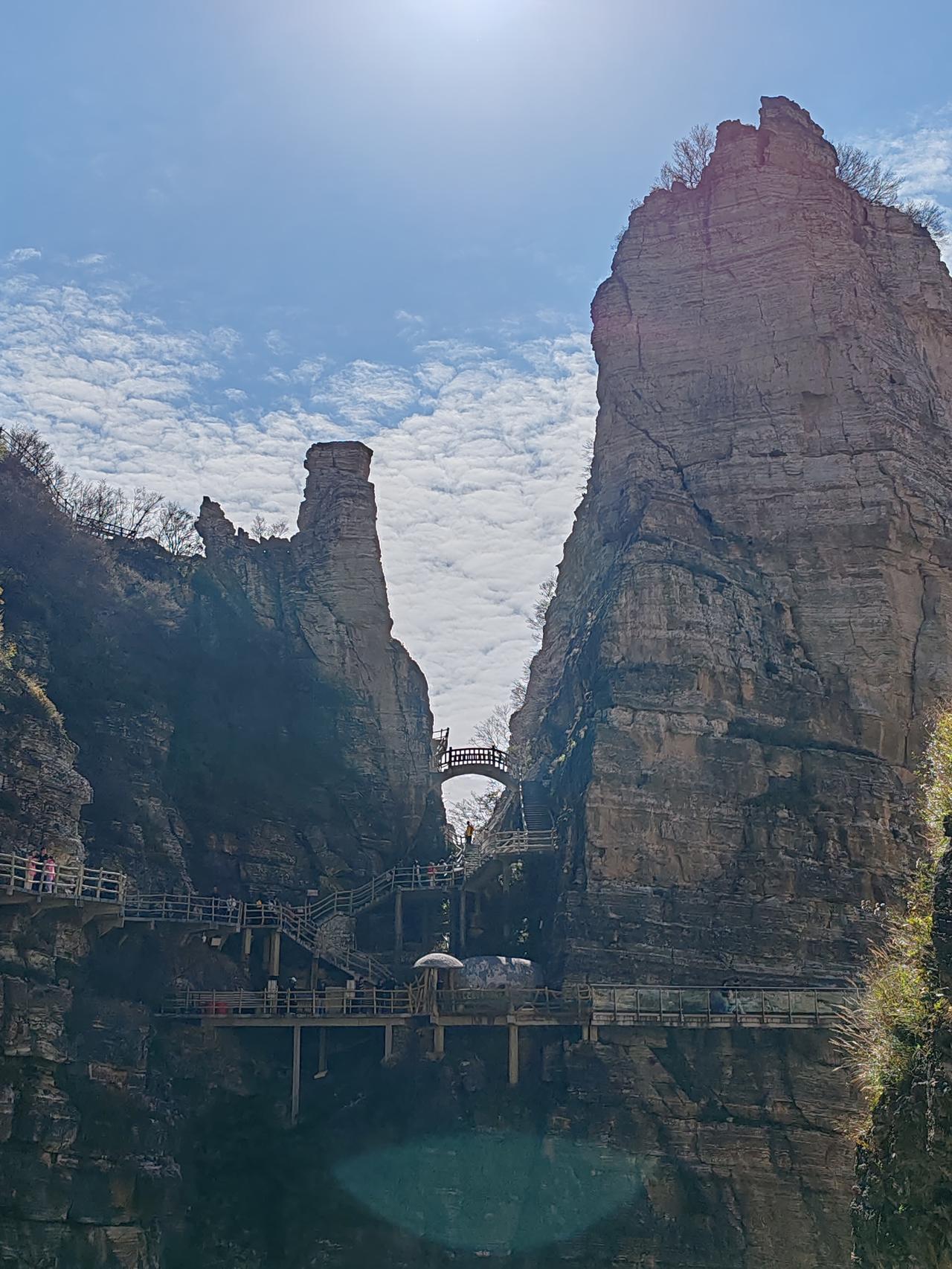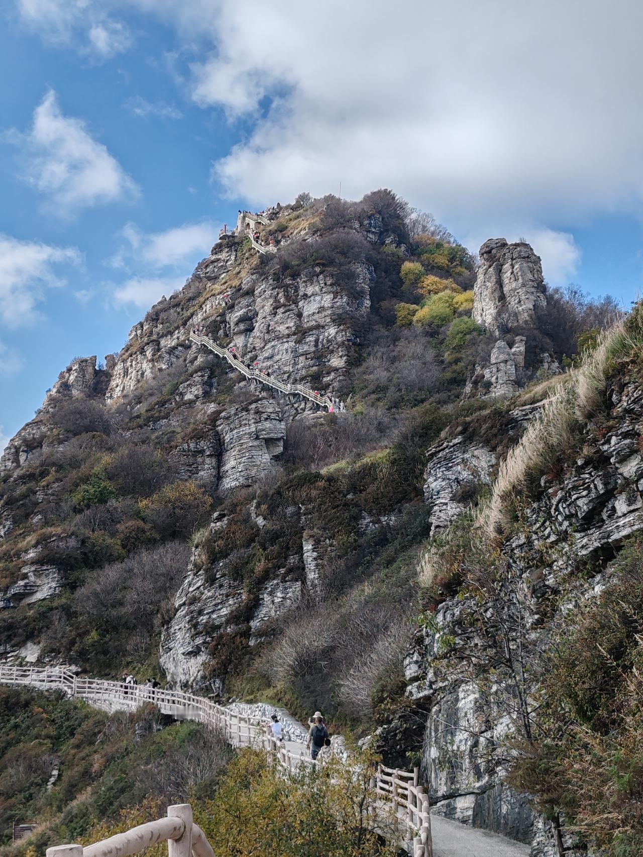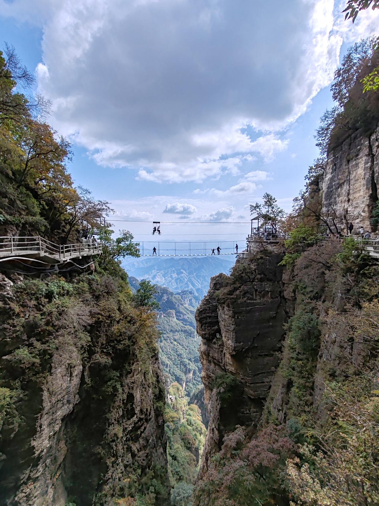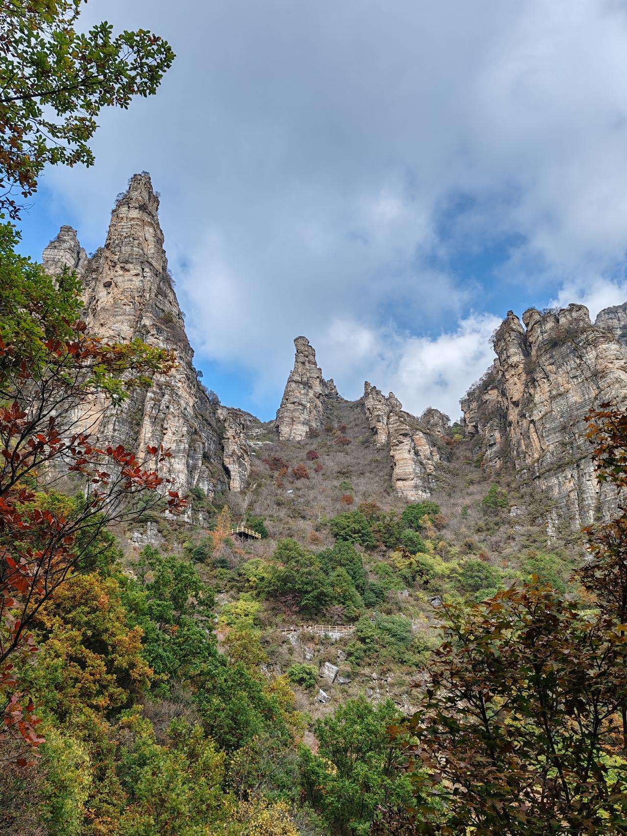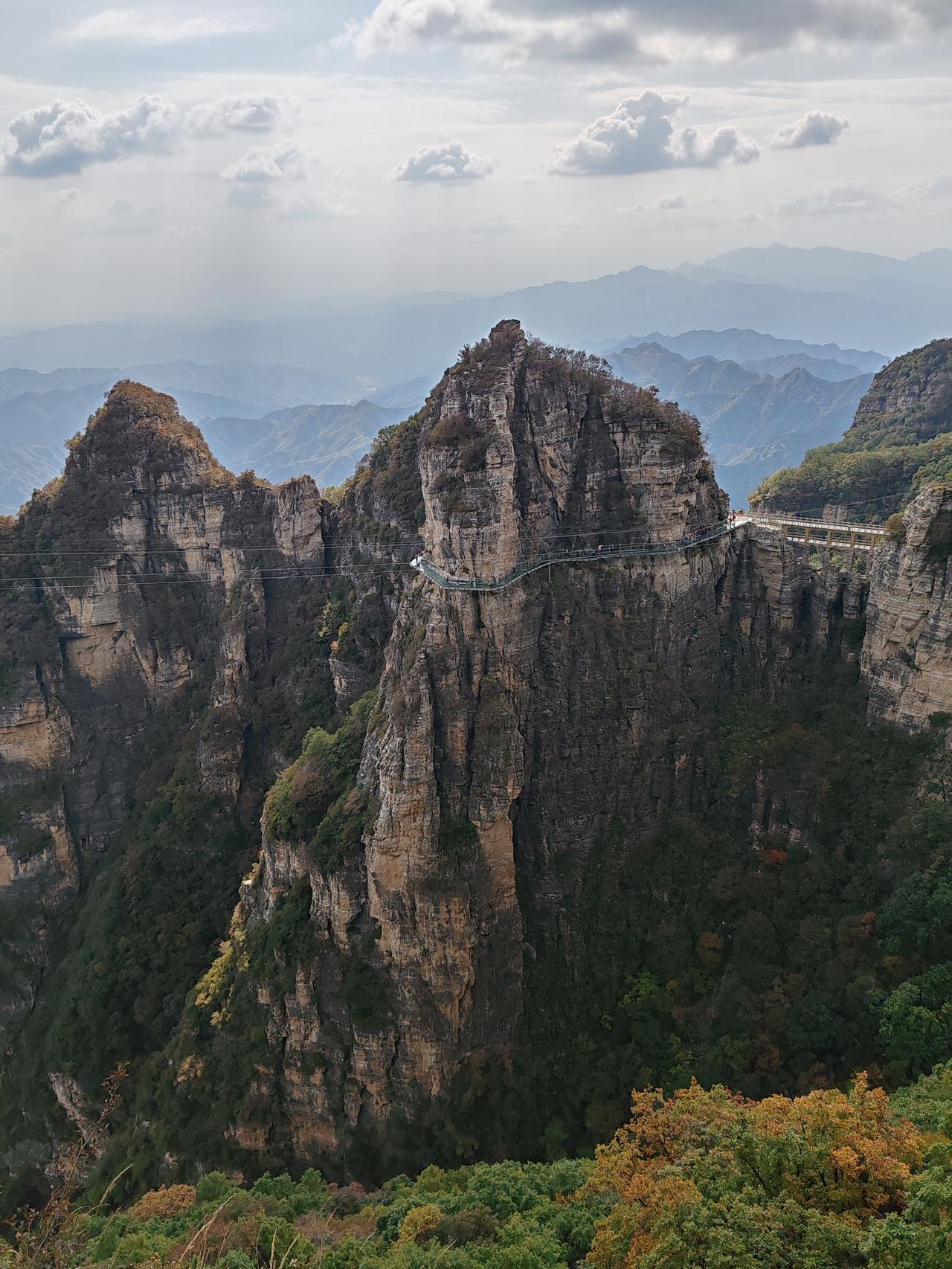 保定市白石山景区,坐落于河北省保定市涞源县白石山镇风凉沟村。白石山因山体尽是白色大理石而得名,主脊线绵延7000余米,其最高峰乃华北平原西北隆起之龙首。该景区被评为国家AAAAA级旅游景区。 10月2日晚抵达涞源并入住,次日一早便前往白石山。途中见东门车水马龙、人潮涌动,便临时改从西门进入,先前做的攻略都派不上用场了。驾车至半山腰,车辆稀少且停车免费。附近的翠屏峰索道无需排队,门票加索道票共275元。搭乘索道直达飞云口。途经双雄石玻璃栈道至双雄石段,玻璃栈道收费10元,此段风景美不胜收。而后攀登至佛光顶,山顶空间狭小,挤满了人,便在此休息吃午饭。 随后下行至韭菜园广场,至此虽已上下攀爬数小时,尤其是攀登佛光顶时颇为陡峭,但体力并未受太大影响,仅走了一万两千多步。接着走完飞狐峡线全程,全程下山路段多于上山路段,却更显吃力。行至绝壁长廊后,景色渐入佳境,精神也为之一振。此段路程也走了一万两千多步。观赏完太行之神后,花45元乘坐飞云口索道直接上行,再搭乘翠屏山索道返回西门。全程耗时六个半小时,虽有些疲惫,但觉得此行十分值得!