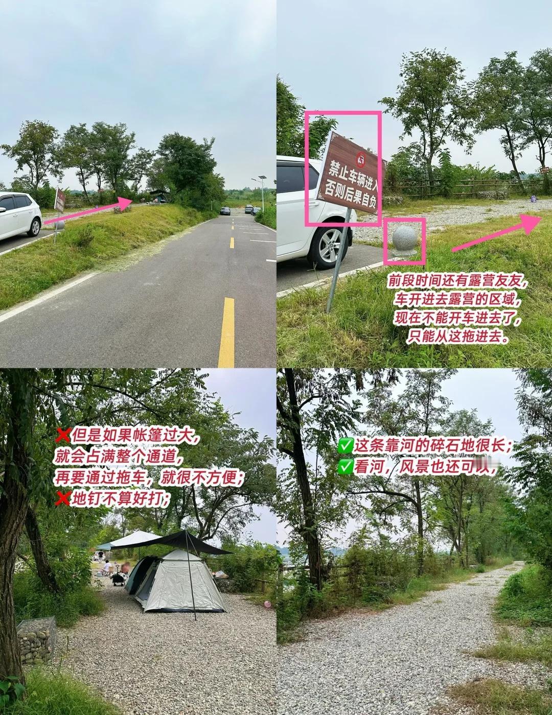 10.1实况➡️岷江边 开车直达 成都免费露营 这免费露营地在可以观岷江风景的一个高处。碎石、木台、草坪都有,10.1去看看现状,来说说吧。 . 🏕️露营区域 这应该是之前有打造,但现在无人管的免费地,大概分几个区域: ❶碎石(靠江边) 再最高台阶处,是“一”字型靠岷江边的碎石地。 ✅这条靠河的碎石地很长,大概400米左右; ✅看河 风景也还可以; ❌如果帐篷过大,就会占满整个通道,再要过拖车就很不方便! ❌地钉不算好打! ❌之前看有露营友友发,这是开车直达 车停旁边的露营区域,但现在门口设了石桩,不能开进去了。 ❷碎石(靠草坪) 这次来,零散的都被停了车,感觉更像停车场。如果没那么多车,也是一个玩车边露营的区域。 ❸木台 需要拖车,拖一段距离。木台不多,预估大小可以搭屋脊帐篷。 ❹草坪 区域宽。 . 📍导航:舟渡村郁金产业基地; 🚗自驾:成都1h; 🅿️停车:免费; 👊🏻配套:没用水,没厕所,需要自带; 🛜附近:离彭镇近,可以一起溜达。 周末露营地图 开车直达露营地 秋日露营计划 城市周边露营好去处 趁着秋天去露营 成都周边游 露营好去处 成都免费露营地 露营烧烤