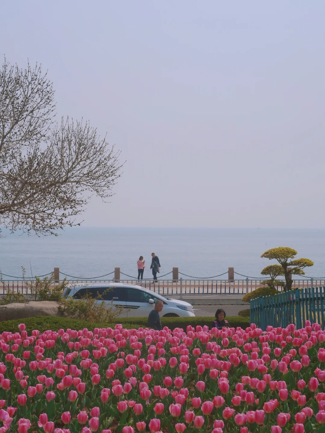 📸拍摄角度:烟台虞美人广场的郁金香有它得天独厚的地理位置,花是盛开在大海边的!马路对面就是大海和渔人码头,拍摄的时候找一个高点,可以将大海和渔人码头都拍进去,照片真的很浪漫很美!