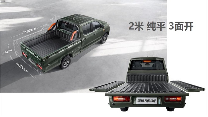 我也参加了3月17日五菱举办的媒体沟通会。五菱征途宣传的产品亮点,一直都是货箱纯平三面开,强调的是装载便利性和装载量。其实,三面开的货箱在卡车行业属于常态,现售皮卡之中也有福田小货郎等多款,并不能算是创新。