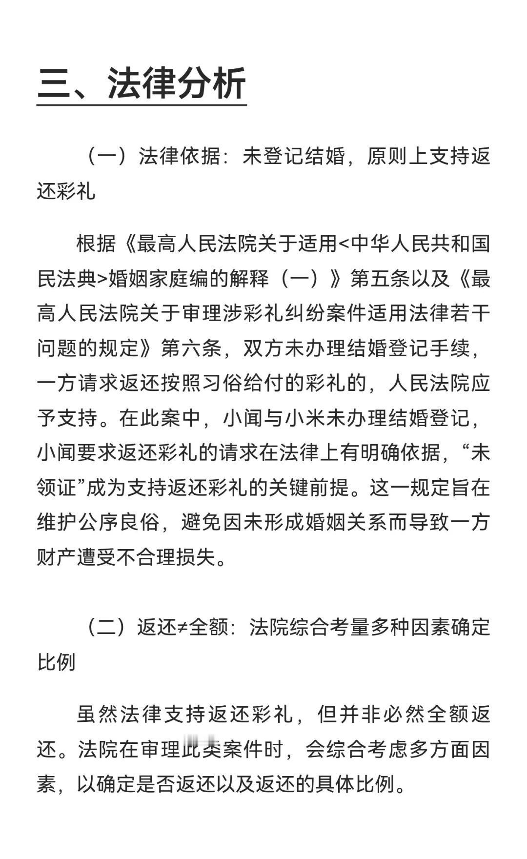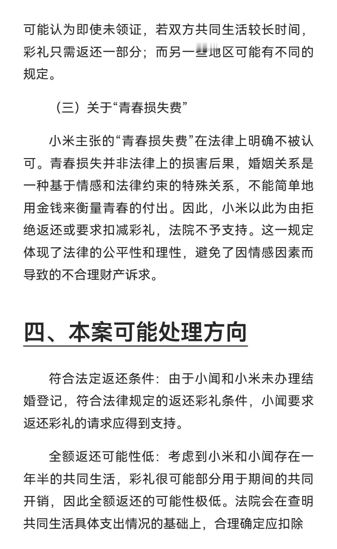 八年情断彩礼纠葛:“未领证分手”,28.8万 未办理结婚登记但支付彩礼后分手,彩礼能否返还?根据法律规定,原则上支持返还,但需扣除共同生活支出、彩礼实际用途及当地风俗习惯。小米主张的“青春损失费”无法律依据,法院不予支持。 法律服务 律师咨询 律师 北京律师 法律咨询 彩礼返还 离婚彩礼纠纷 离婚彩礼退还