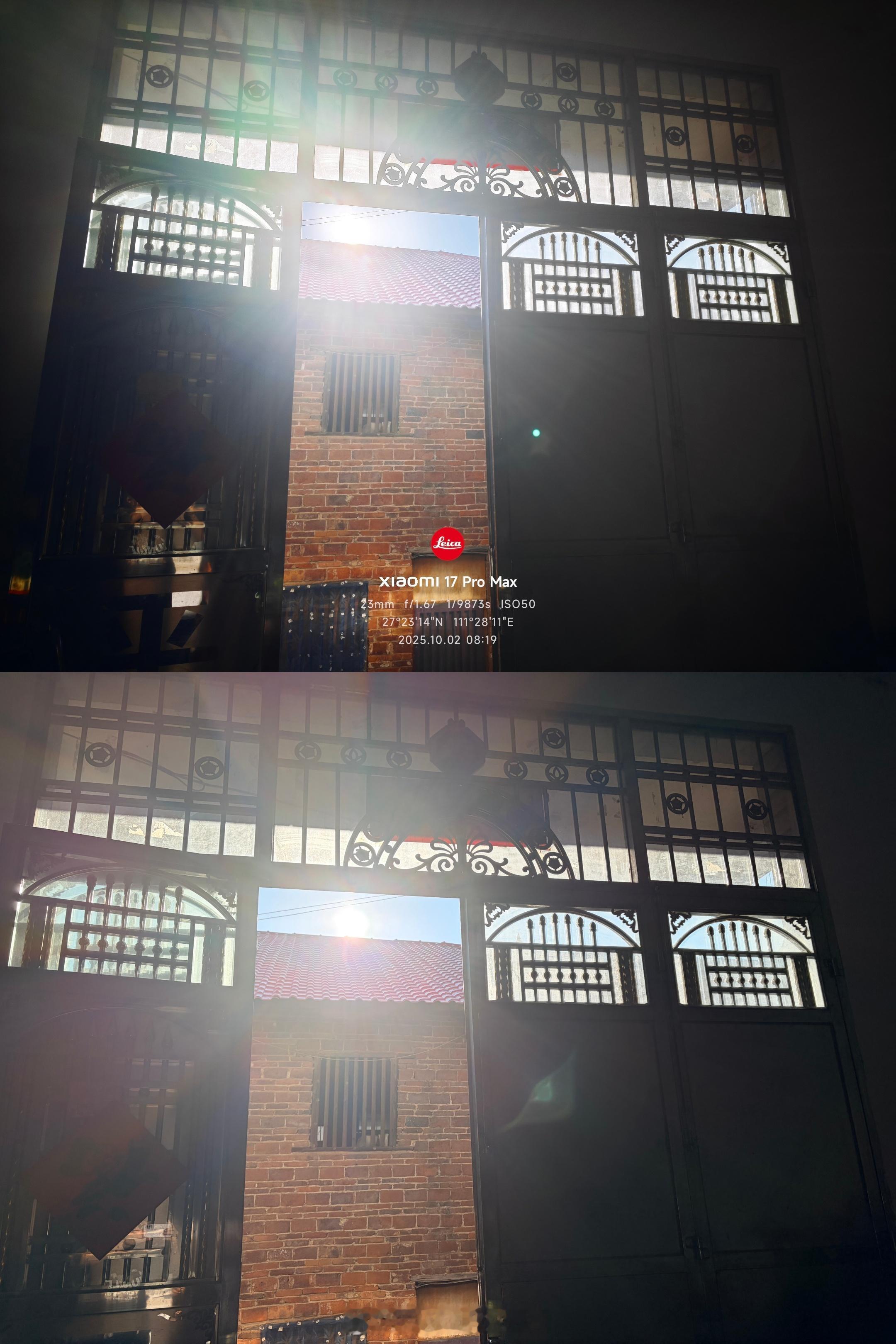 随手拍了几个小米17ProMax的逆光对比,大家觉得效果如何?(对比机型是iPhone17)[思考]