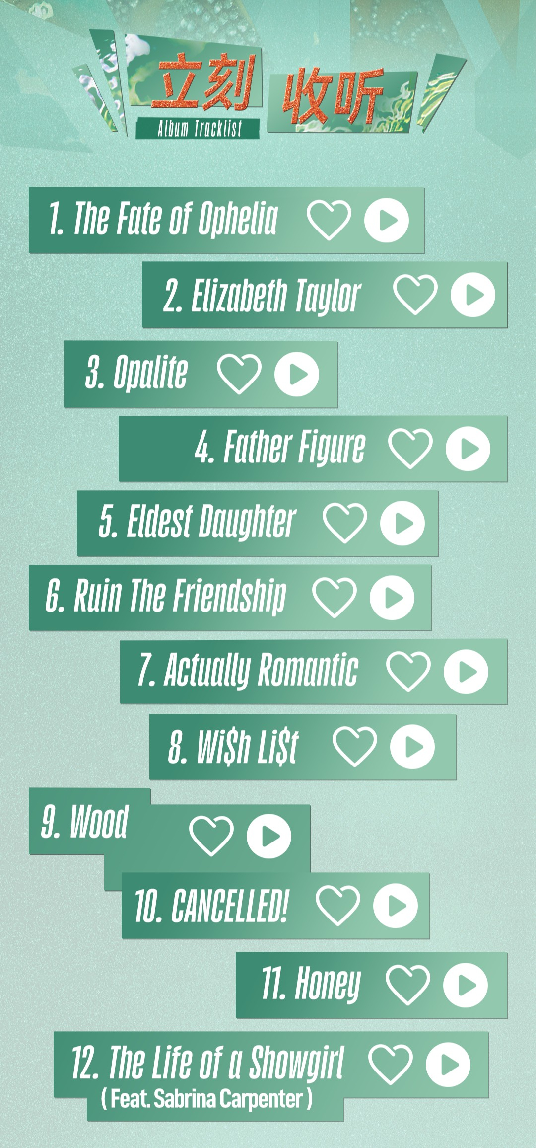 华为新歌首发 第十二张录音室专辑《The Life of a Showgirl》终于上线啦!在鸿蒙5华为音乐搜索“Taylor Swift”,每首歌都可以开启空间音频,带你进入泰勒巡演后台的化妆间,感受那些散落的亮片和未熄灯光的真实氛围。也可开启超高清音频,聆听她细腻的情感独白,戳链接体验一场音乐与生活的深度对话吧,还有专属超钻会员福利等你领取>>