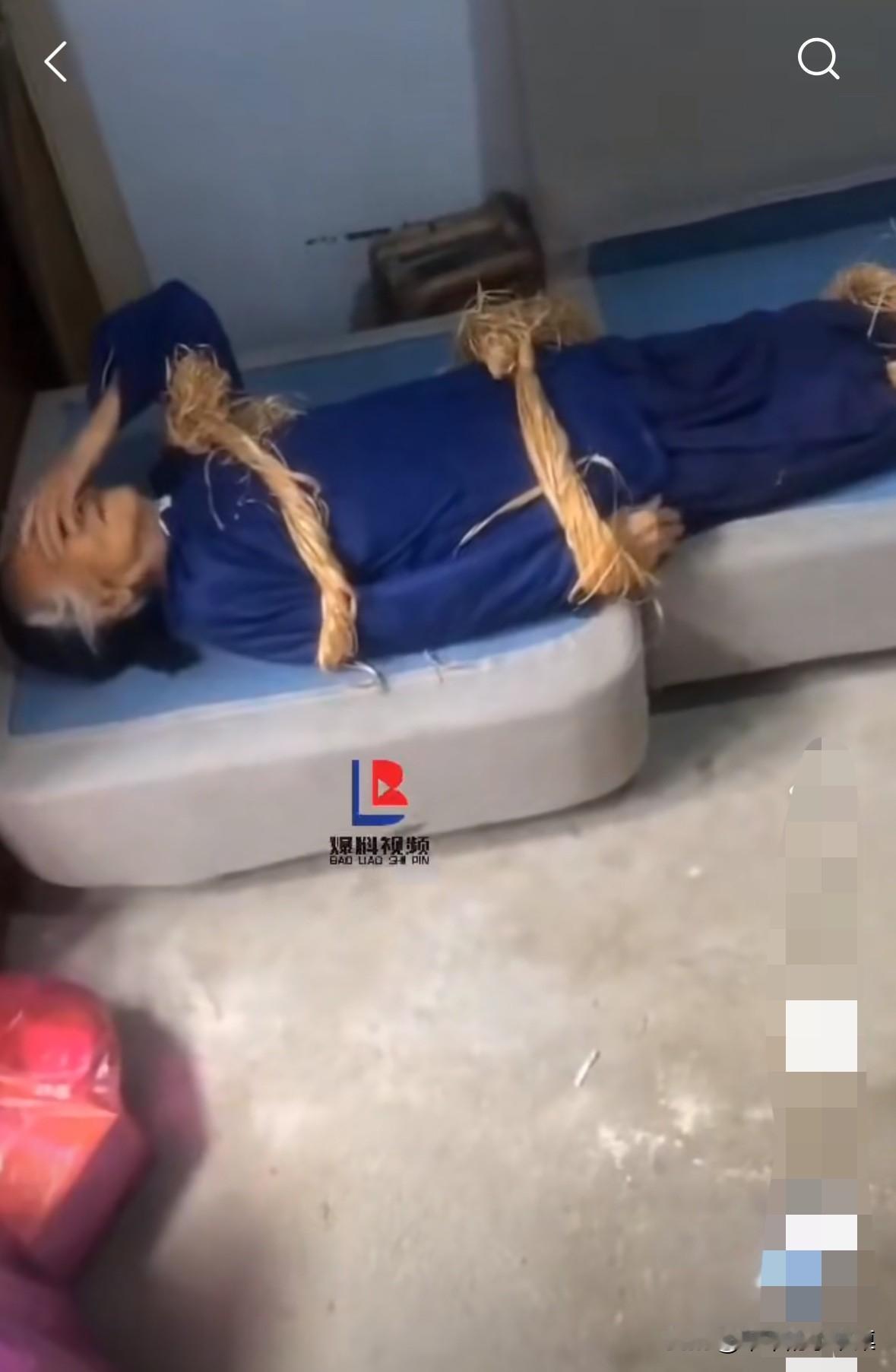 老人还没死,子女们就把她绑在床上,而且寿衣都穿好了! 真是没人性啊,你们还是不是人,这可是生你们养你们的妈妈啊! 这和杀人有什么区别。 网友说:绑起来,是为了规整尸体好放进棺材,提前穿寿衣是因为没死身体柔软,好穿! 太恐怖了! 我总算理解那句久病床前无孝子了。