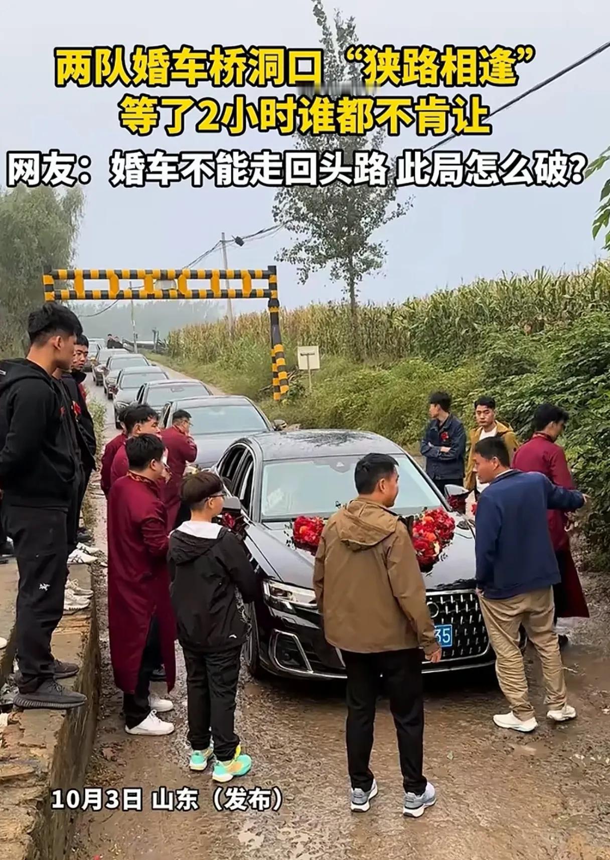 无解!空中吊车不来必有一家走回头路,要不然如何破局?不提前看好路,怪得了谁?2个小时就是20小时也没好法子,错过吉时更闹心,抓阉吧!公平公正,一直等下去没结果!