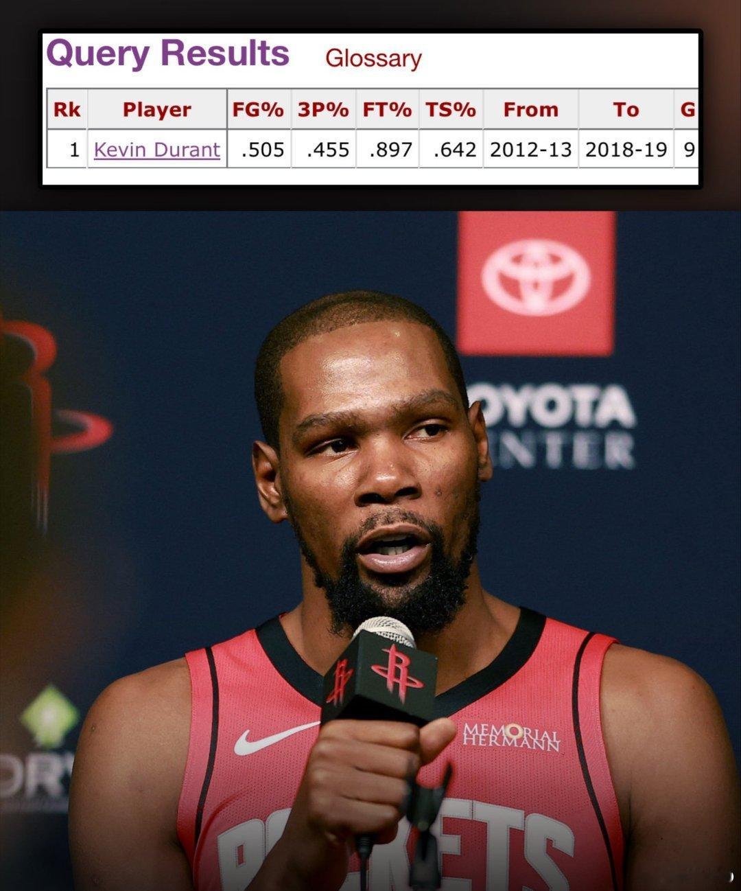 惊闻:这是杜兰特在丰田中心的季后赛的生涯数据(9场)——数据简直不真实👀