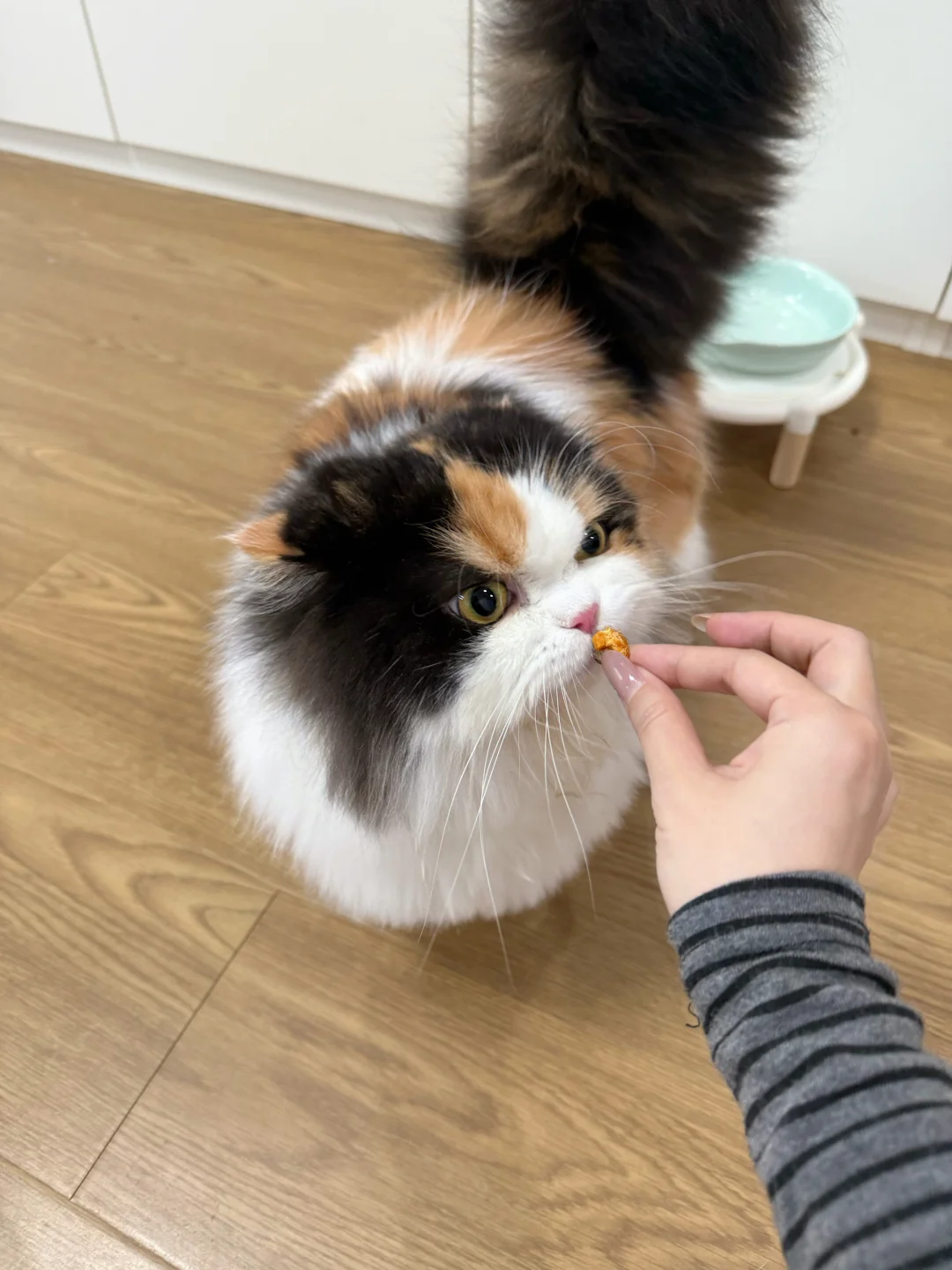 你手里拿着的有虾有鱼的猫豆豆是不是给咪准备的