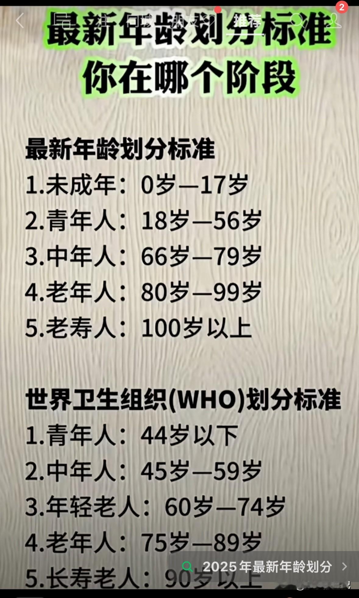 最新年龄段划分标准,看看你是哪个年龄段的。 0–17岁,未成年人, 18–56,