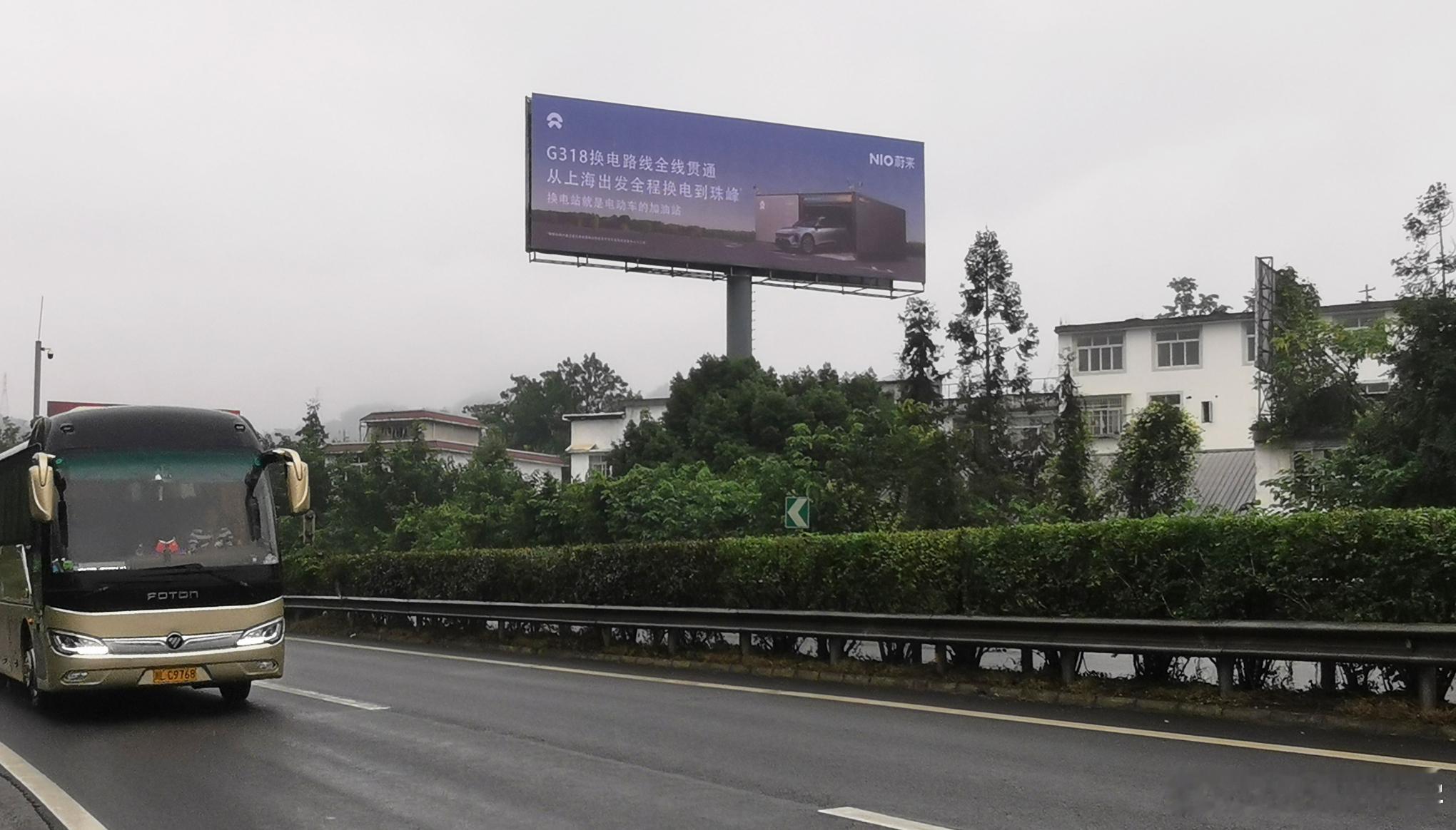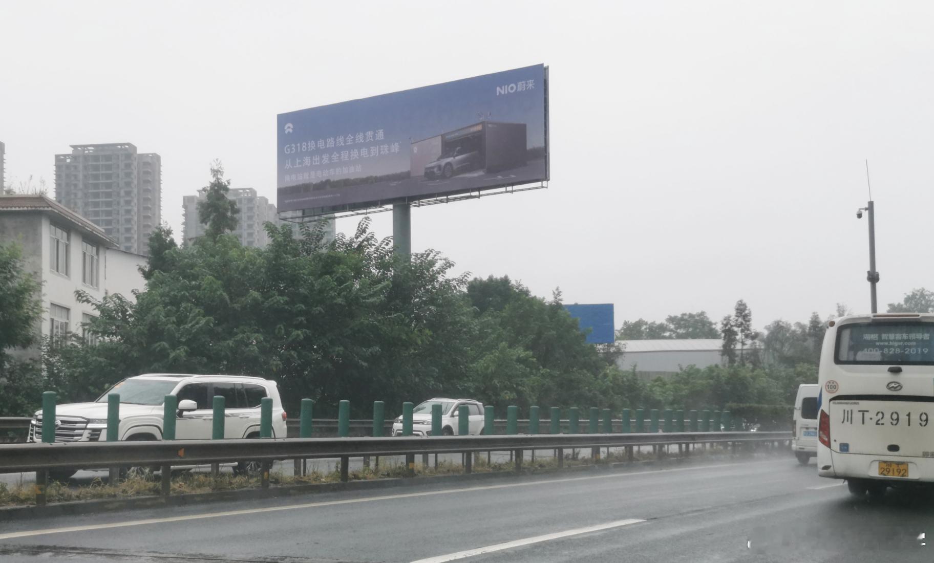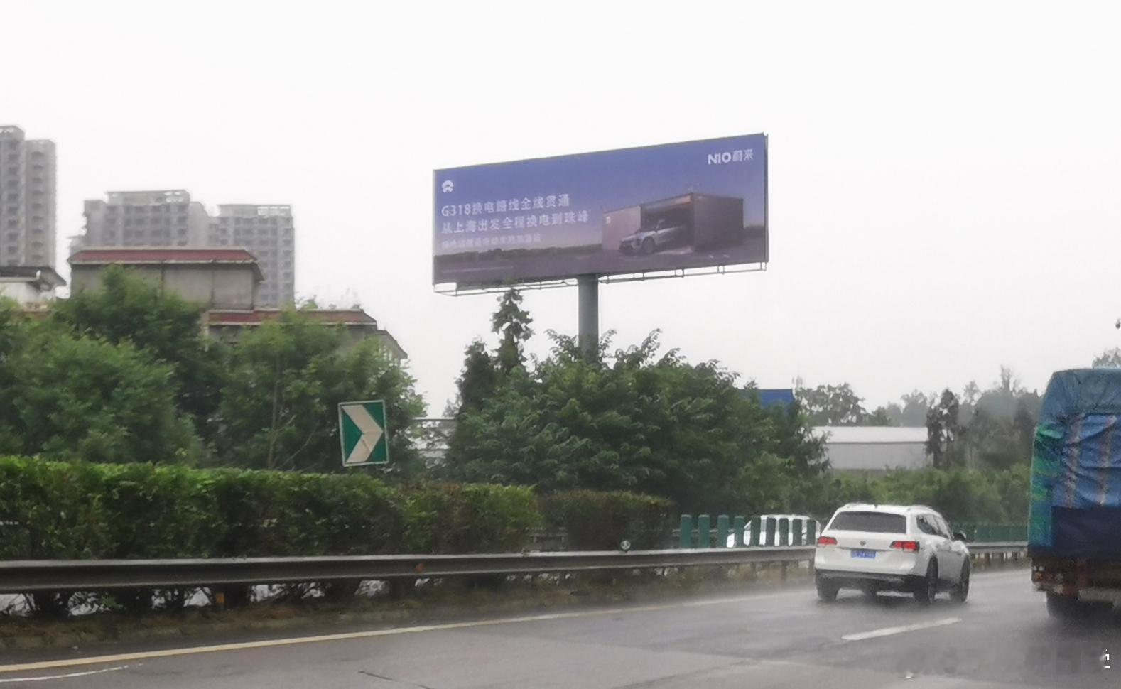 节假日的高速公路,就是大型现身说法的时候,这段高速广告牌是成雅高速雅安名山段的,也是进藏318的必经之路,能看到蔚来这里做换电站广告,也是CBU的结果。