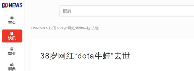 DoNews快讯——38岁网红“dota牛蛙”去世
