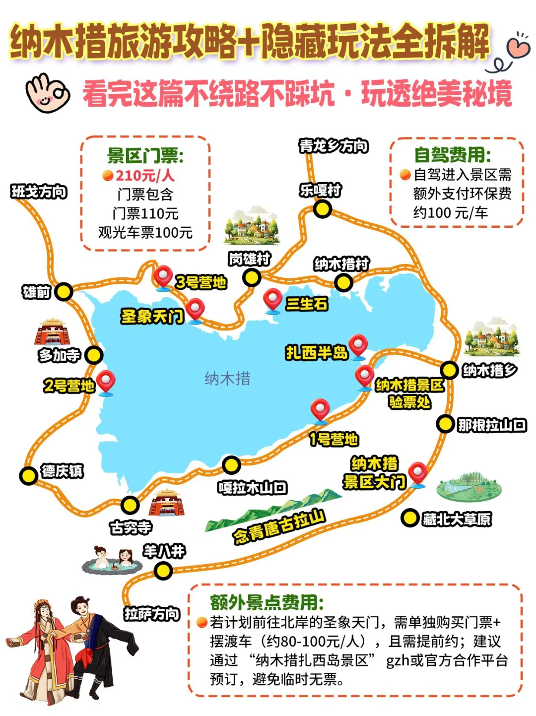 圣象天门:附近有帐篷住宿,住在这能看到绝美的星空和第二天超震撼的日出,当第一缕阳光照在纳木错上,整个湖面像是被点燃,美到失语。不过住宿条件有限,要做好心理准备。