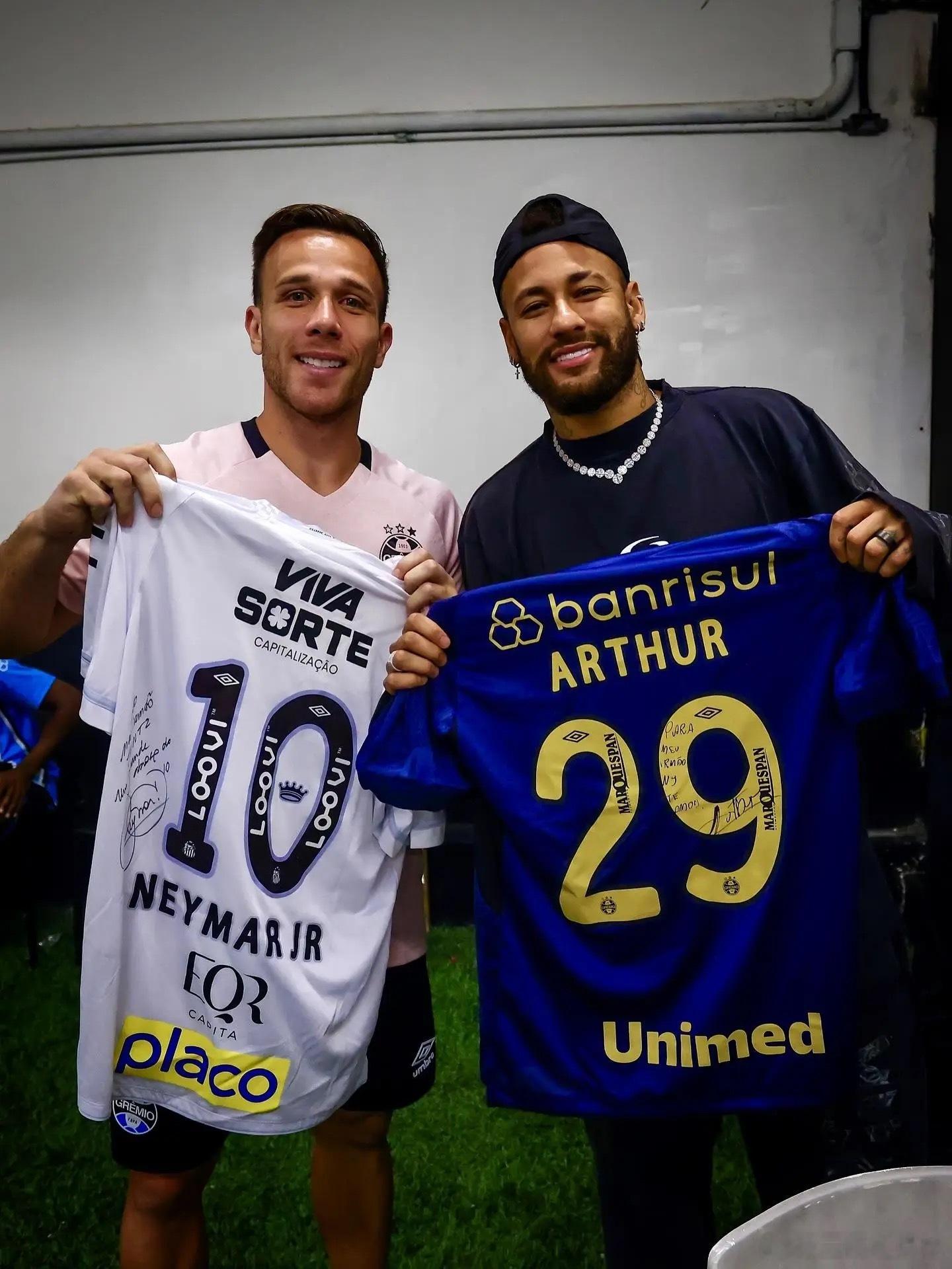 阿图尔与内马尔交换球衣:兄弟,很高兴再次见到你