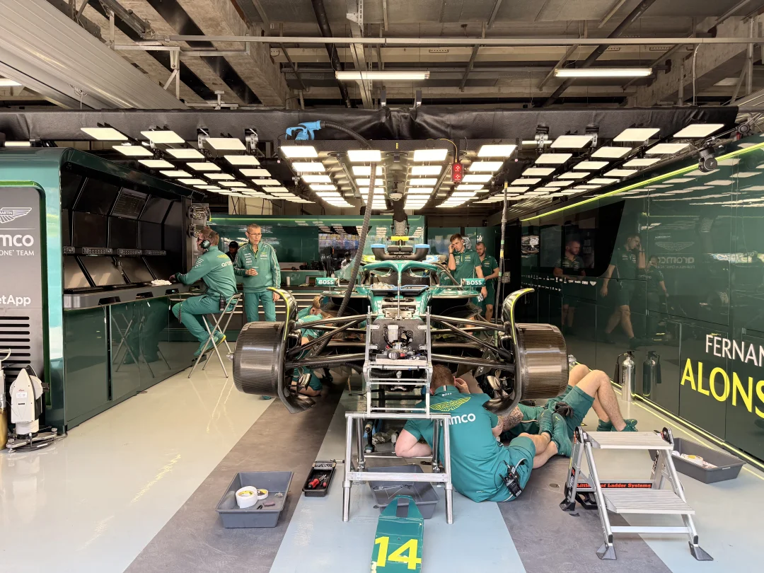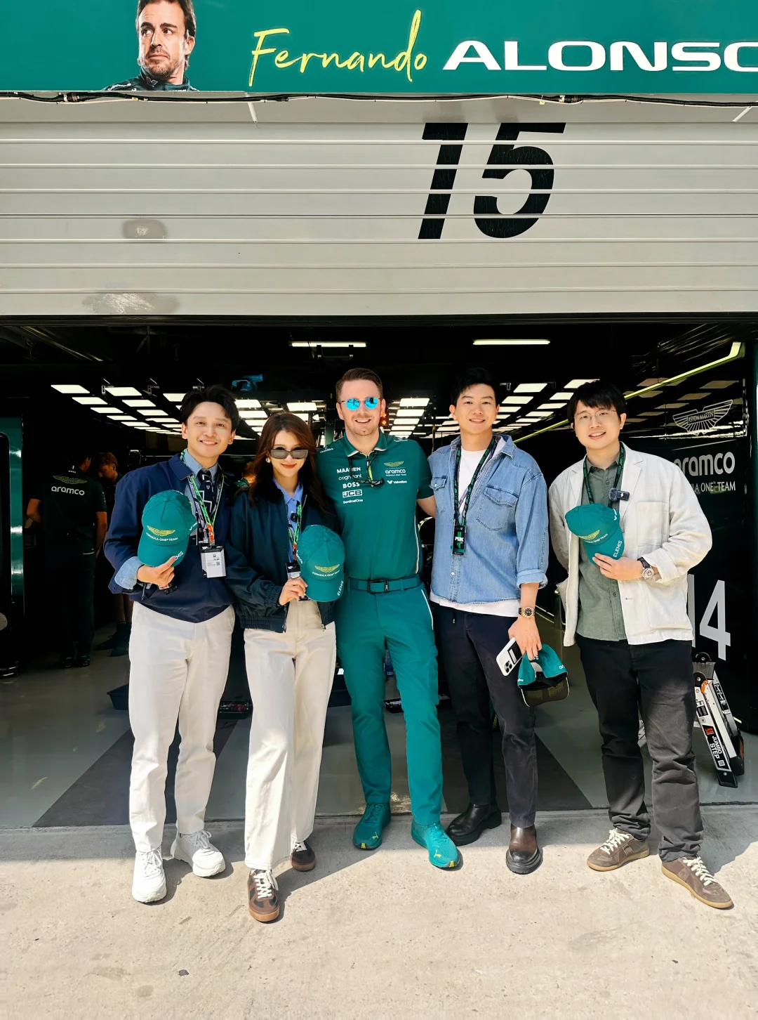 以前只能电视上看到的画面,现在居然可以摸得到!!!(此为比喻,不能摸,只能看。 车库这满满的老外,除了大家都知道车手很帅以外,不知道为什么维修技术人员也都很帅,在这应聘是有什么颜值要求吗? 拿的是Aston Martin Aramco车队的包间,当然,这都要感谢伟大的赞助商ELEMIS给我的门票,谢谢各位杰出的女性同胞,让车队越来越重视女性市场,不然我是真没任何方式能够进来。 昨天去的,今、明两天我都没有票,如果有去现场的朋友,记得防晒,穿少点,市区来回交通很堵,预留好时间,祝好运!