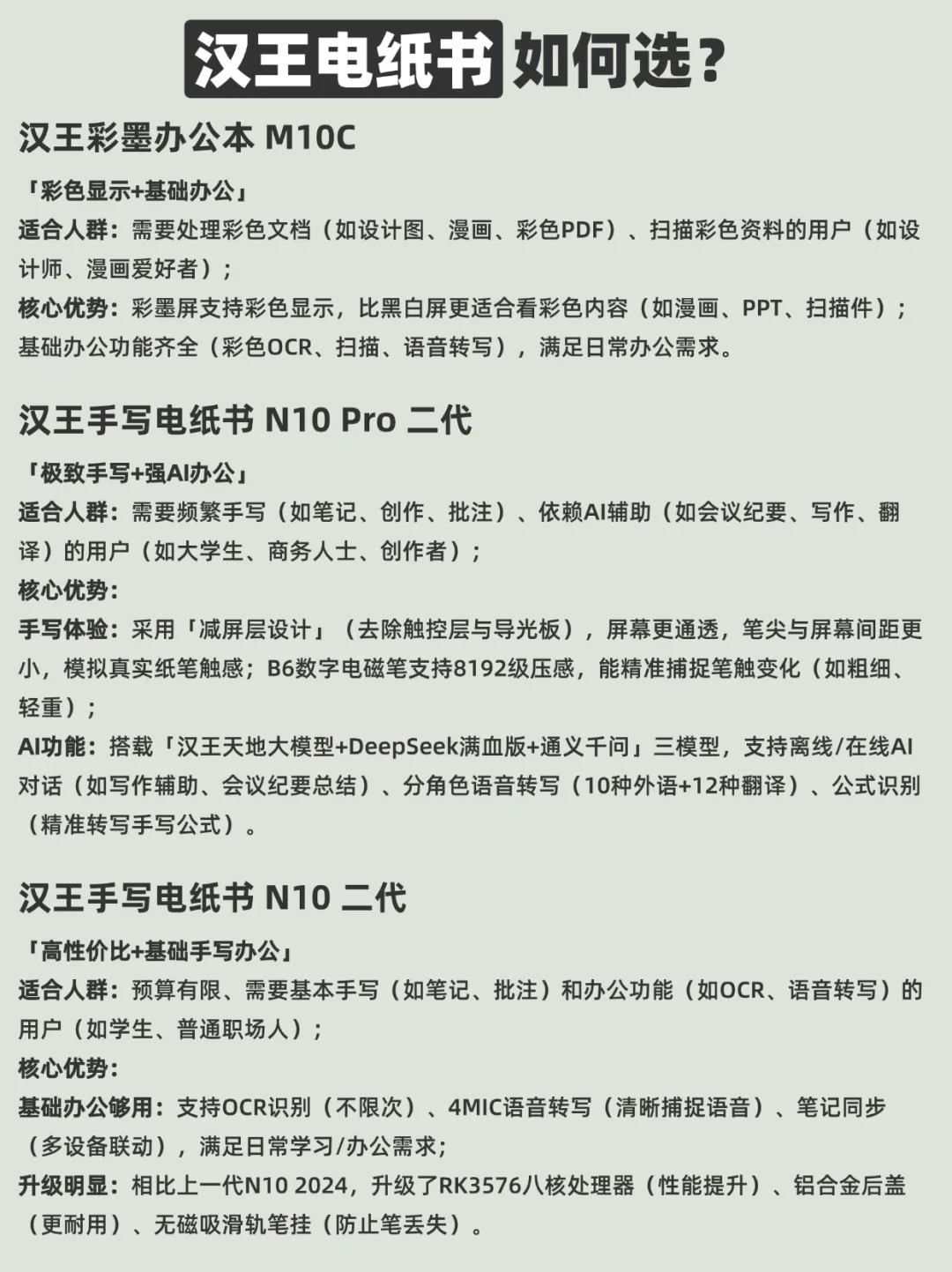 适合人群:预算有限、需要基本手写(如笔记、批注)和轻办公功能(如OCR、语音转写)的用户(如学生、普通职场人)。
