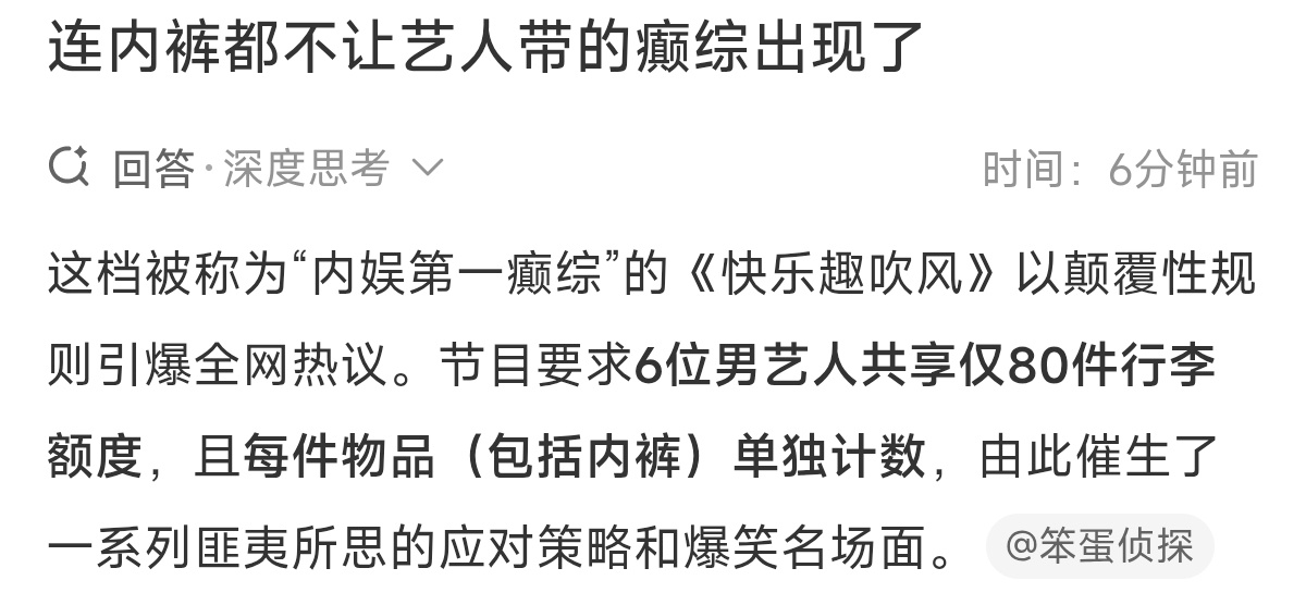 这么颠的词条原来是个综艺……连内裤都不让艺人带的癫综出现了