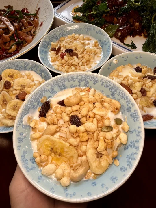 还有这边的酸奶味道就是更浓郁些,加了各种干果、小料,口感很丰富!
