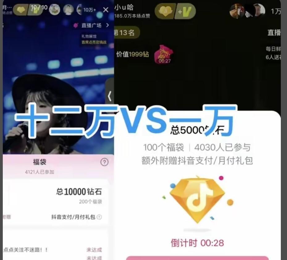 还有文儿直播间12万人抢福袋的才4000多人,小U哈一个万人直播间抢福袋也有4000千多人。抢福袋才能最真实体现人气,小U哈中午直播也有哲领大哥守护,小时榜和人气榜都能拿到第一
