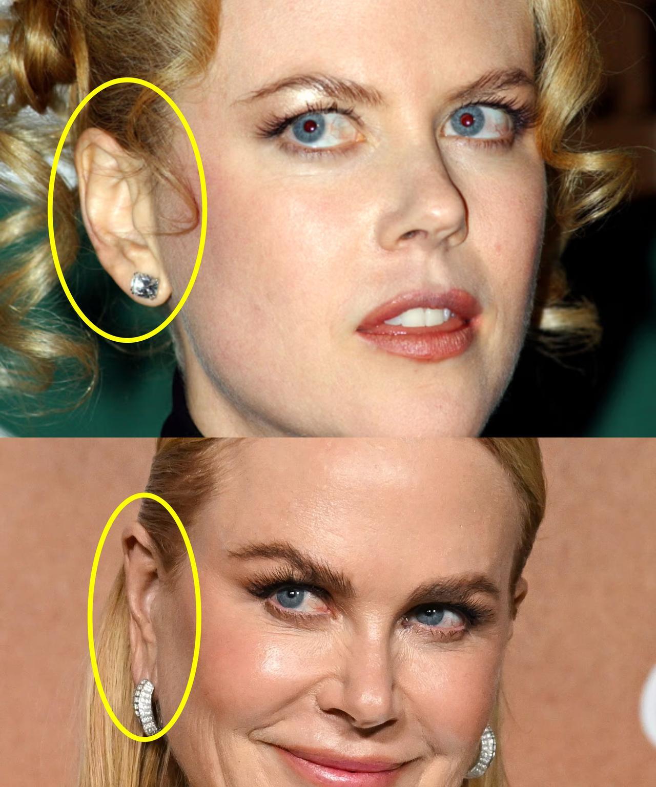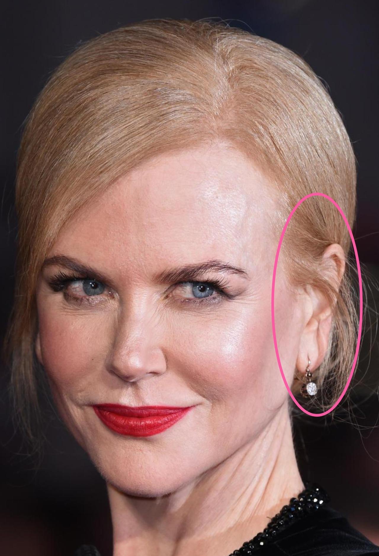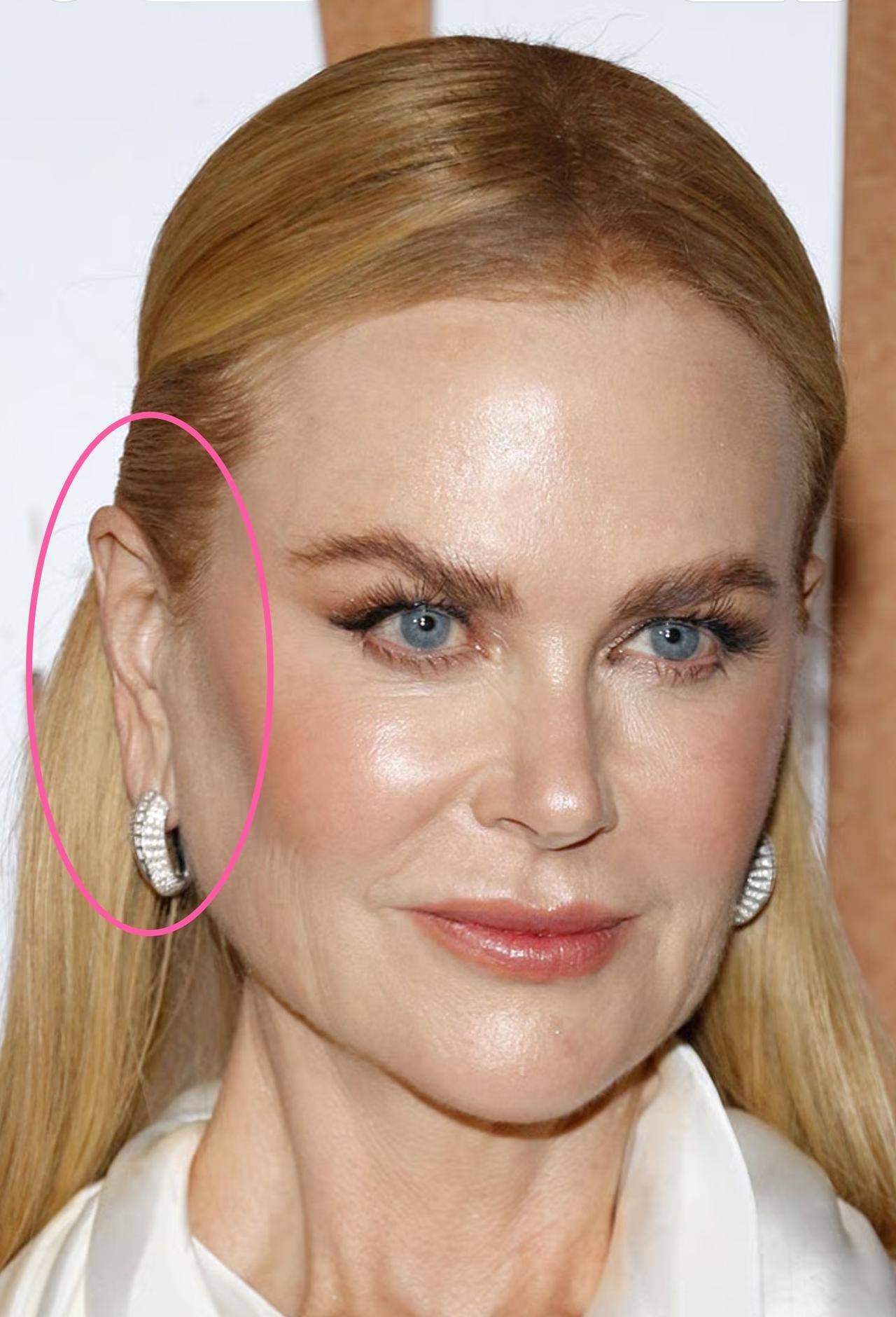 妮可.基德曼拉皮痕迹严重,大耳垂看得出,因为皮肤往上扯,势必会造成耳垂向下去,和