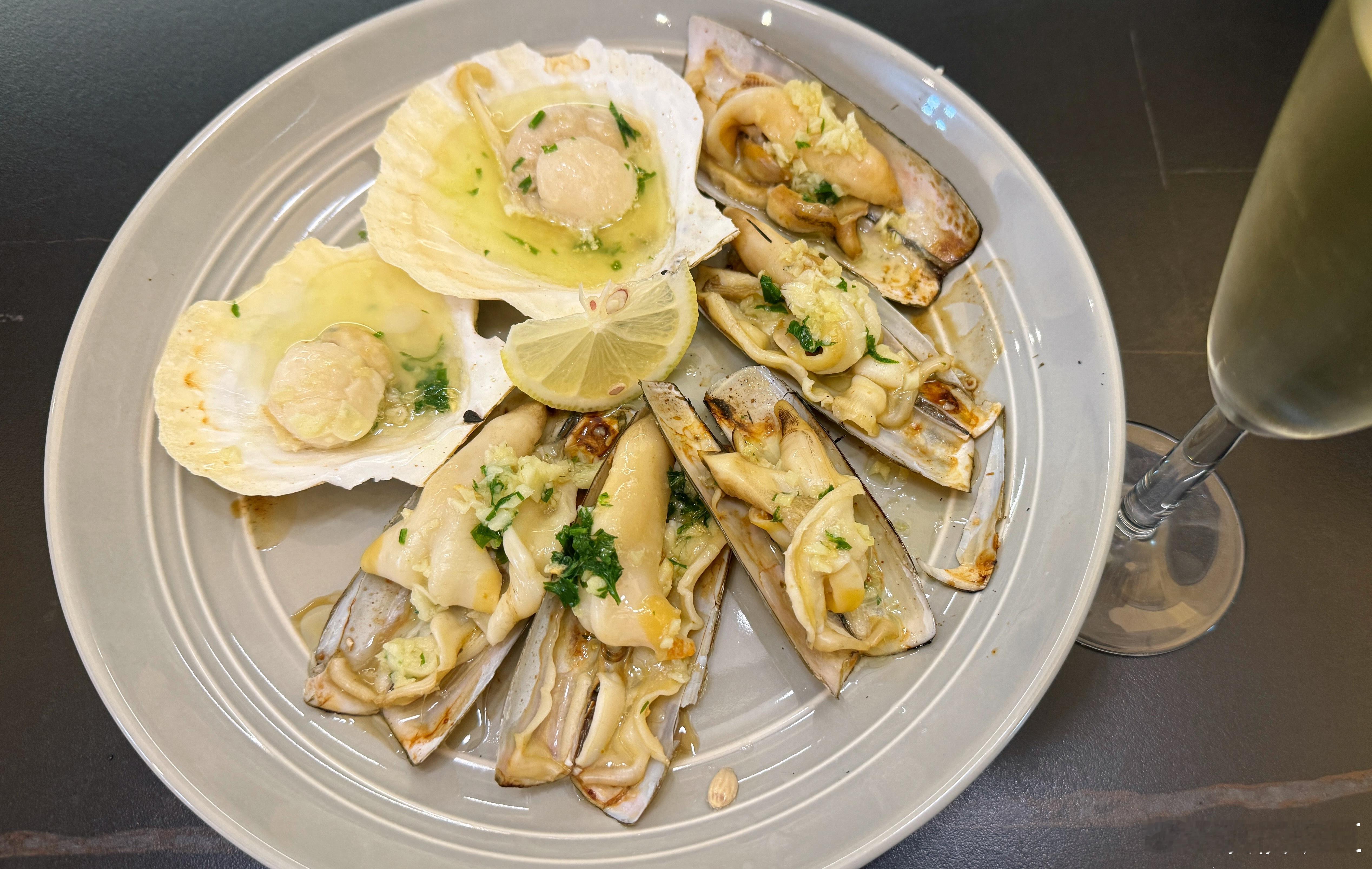你做的时候可以多买几个扇贝,用扇贝的汤水淋在蛏子表面,这样看起来就很多汁。