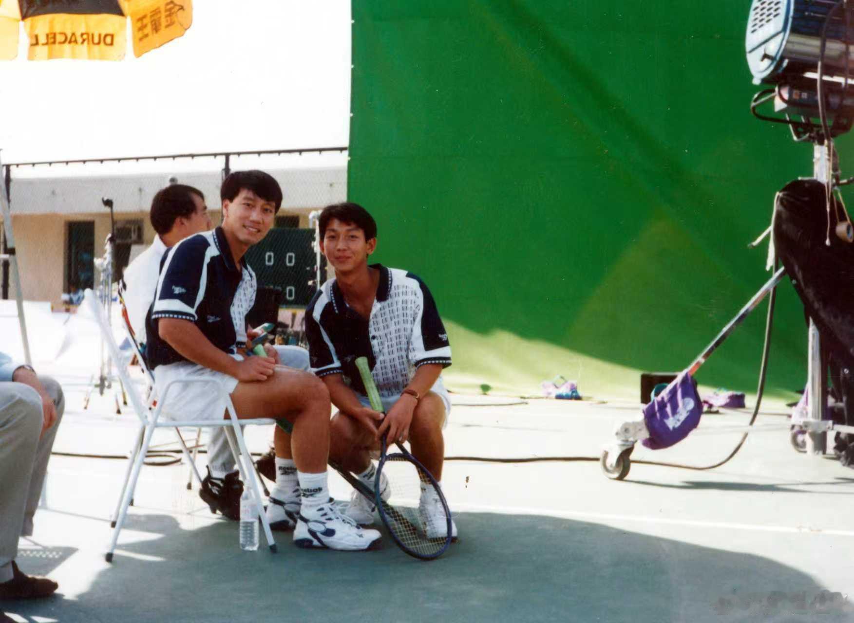 重点介绍一下俊哥的冠军新搭档,多年担任中网的官方摄影师,也是每周五星河湾哇哈球局的成员。今年中网大家都在回忆张德培旧时的飘柔广告并对比目前迈克尔.张的发量,感叹岁月不饶人。当年高峻就曾担任张德培飘柔广告的替身(图5),这个照片是在北京亚运村的网球场边拍的,图中坐在张德培身后的是他的哥哥兼教练张君培,时间应该是在93或94年北京沙龙赛期间,张德培在赛前抽出一个小时拍了近景和特写镜头,高峻后来忙乎了多半天,拍了一些击球的背影以及脚步移动的镜头,成为张德培的“背替”和“脚替”。
