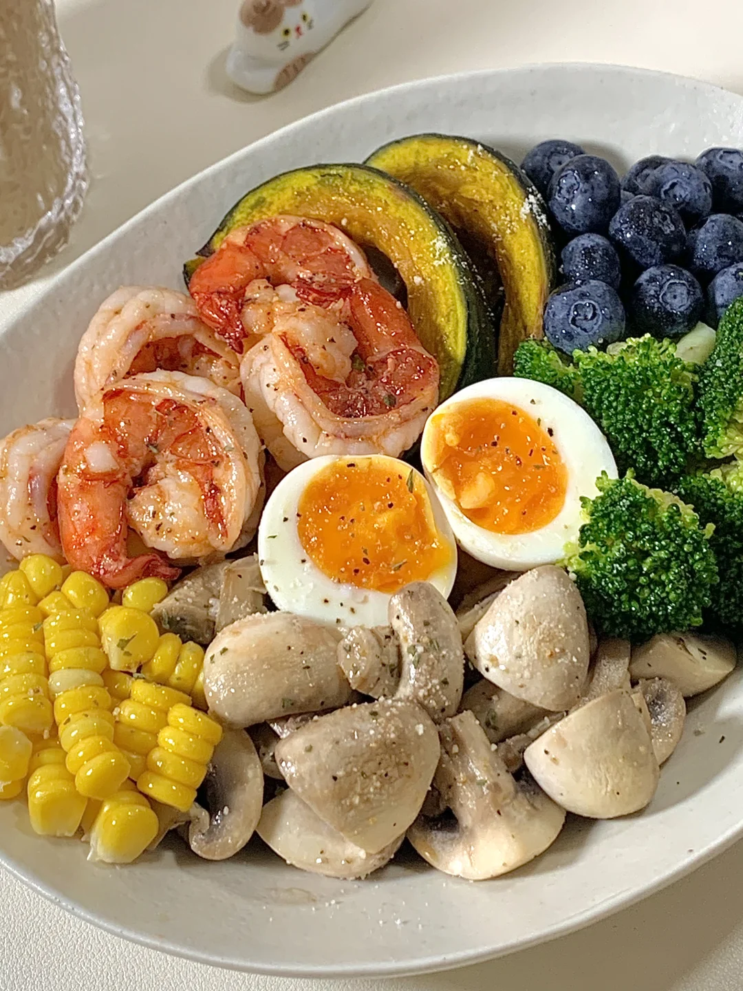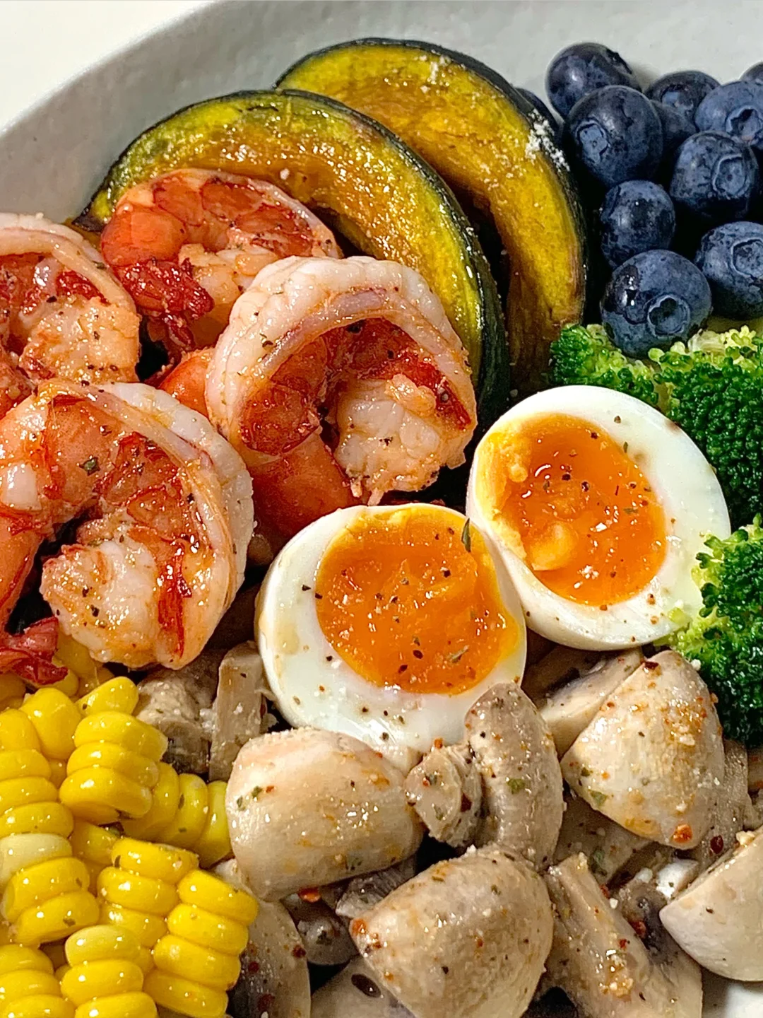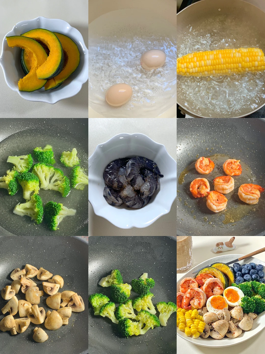 夏日的较量从干净饮食开始吧! 管理期也可以吃好吃的饭饭~🥣 🫕食材: 虾仁➕贝贝南瓜➕西兰花🥦➕口磨➕溏心蛋➕蓝莓➕玉米 ✨一盘都是健康又低脂的食材,炫儿吧嘎嘎香😋
