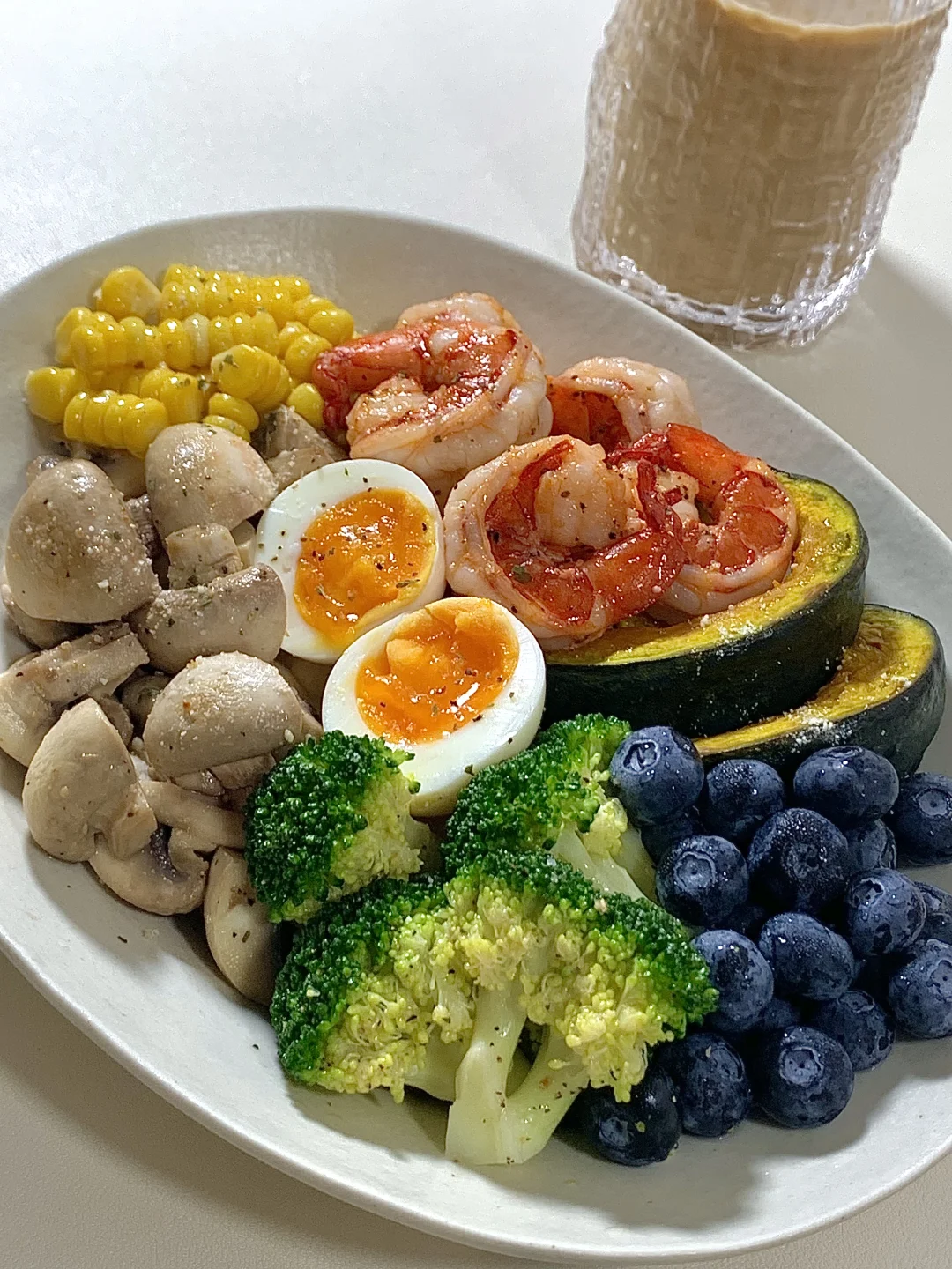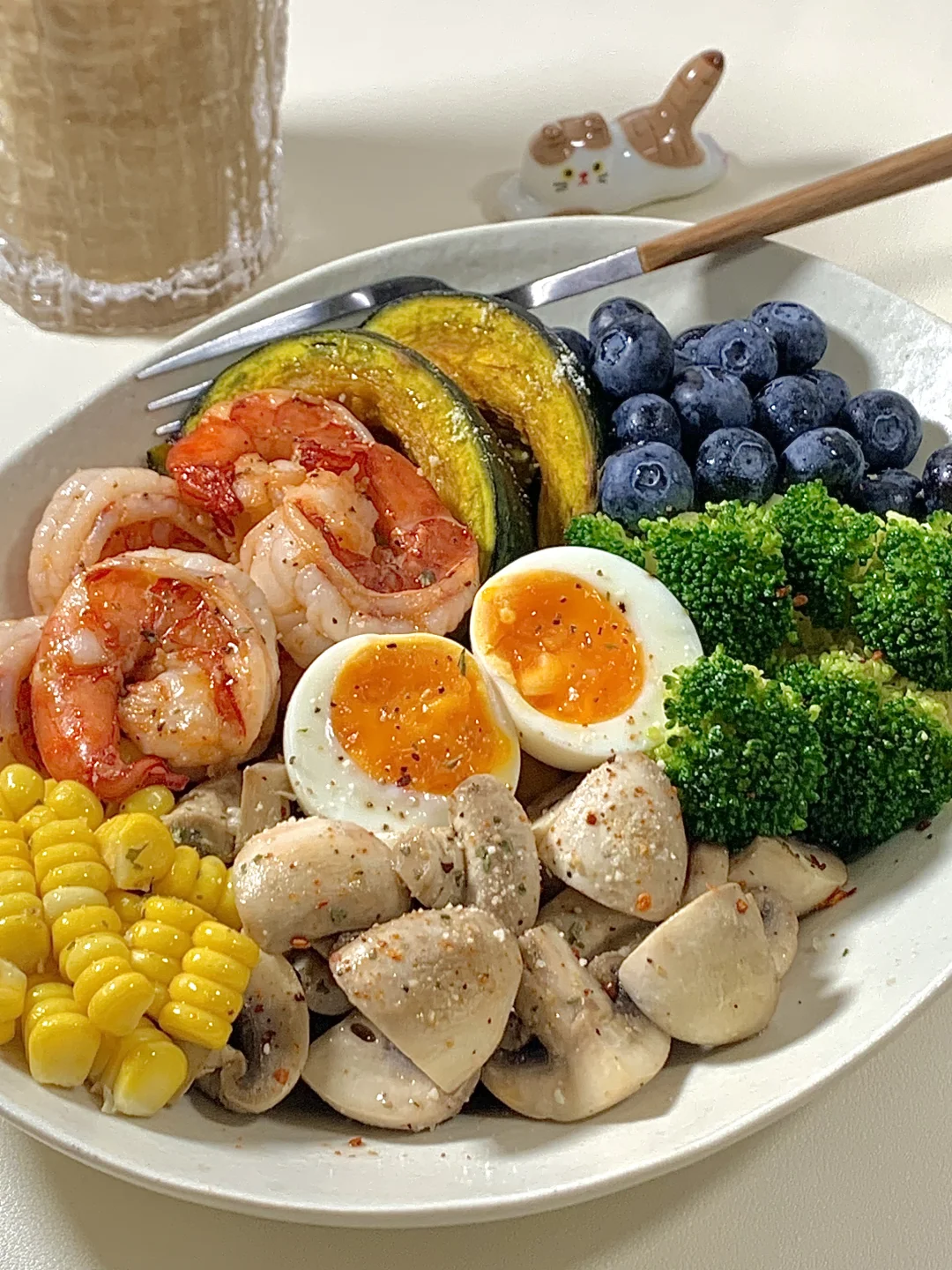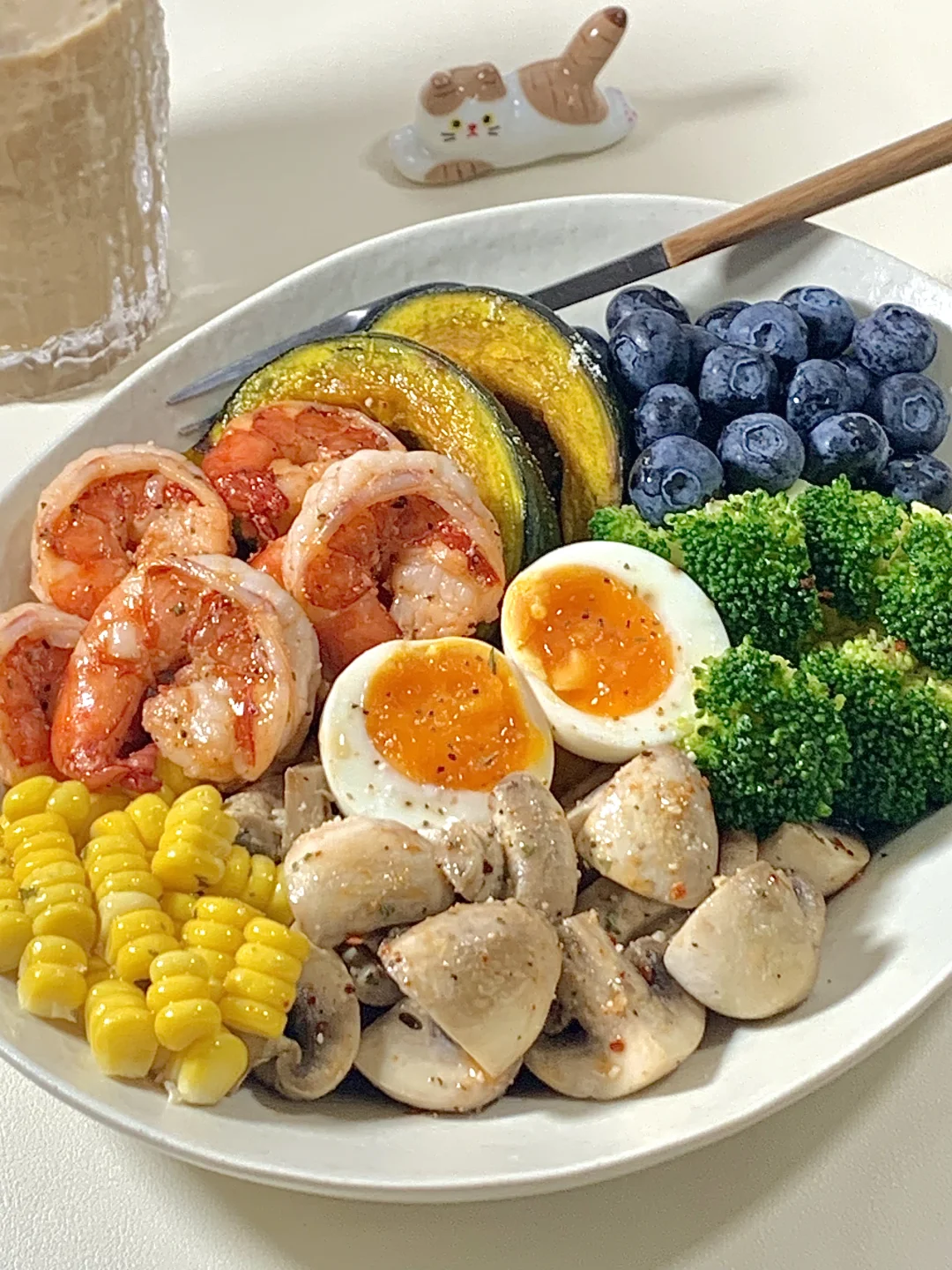 夏日的较量从干净饮食开始吧! 管理期也可以吃好吃的饭饭~🥣 🫕食材: 虾仁➕贝贝南瓜➕西兰花🥦➕口磨➕溏心蛋➕蓝莓➕玉米 ✨一盘都是健康又低脂的食材,炫儿吧嘎嘎香😋