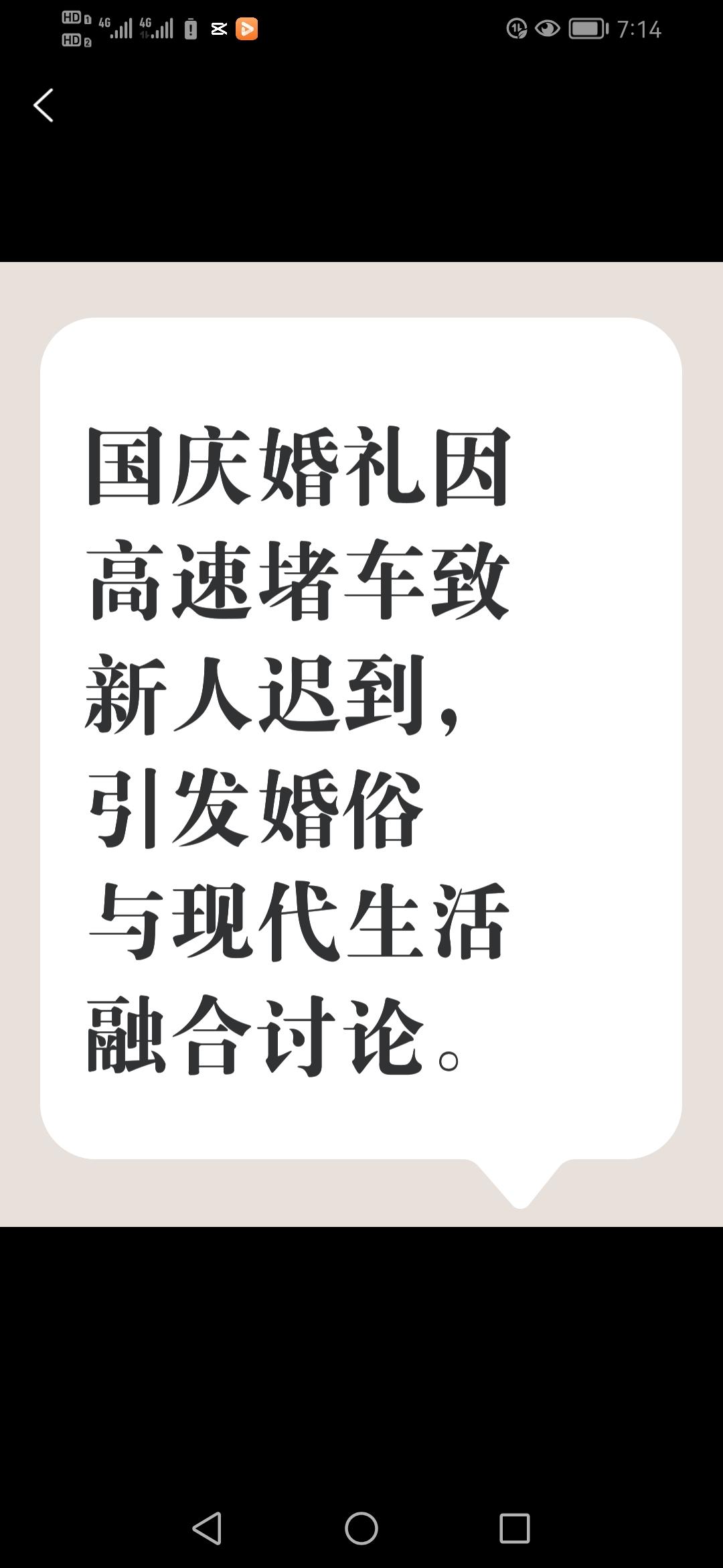 国庆假期,一对新人因高速大堵车导致婚礼现场尴尬一幕:宾客已开席,新人却还在路上。 国庆假期,江西一对新人的婚礼因高速严重拥堵上演了一场“哭笑不得”的意外。原定于10月3日中午在老家赣州某村举办的婚礼,新郎李先生与新娘因高速连环车祸被堵在半路,直到晚上宾客已开席,他们仍未到达。最终,新郎父亲决定按照原定时间开席,让宾客先用餐,此举引发网友广泛讨论。婚庆专家认为,尽管新人未能按时到场,但这一做法体现了对宾客的关怀,也反映出现代婚礼中灵活性的重要性。此次事件不仅成为了国庆出行高峰中的一个真实案例,也引发了公众对传统婚俗与现代生活的融合思考。黄金周高速堵车