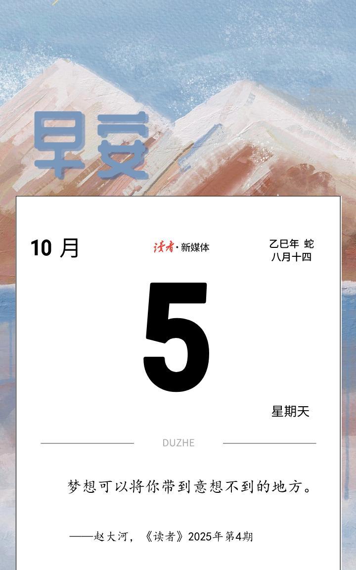 #读者日历# 梦想可以将你带到意想不到的地方。 ——赵大河,《读者》2025年第