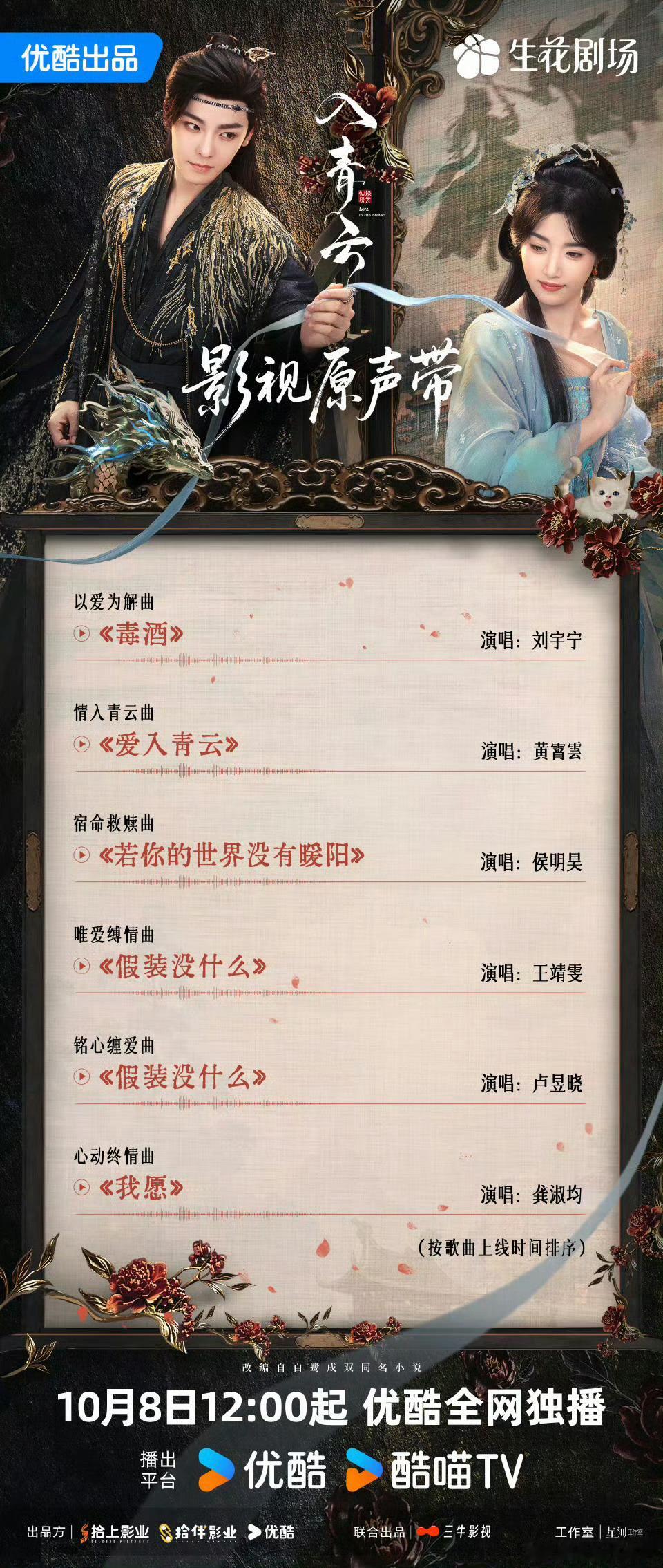 入青云OST阵容救命!《入青云》OST每首歌都好绝!刘宇宁的深情、黄霄雲的穿透