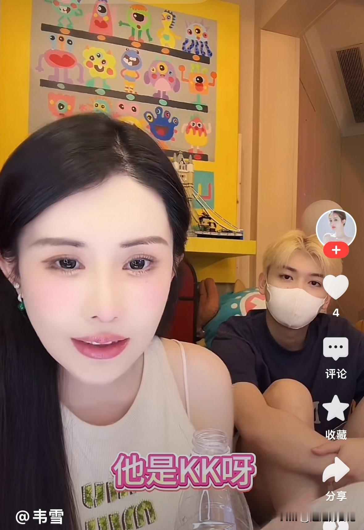 韦雪被网友质疑换男友太快,韦雪吓的立马澄清,她生后那个戴口罩的小男生是kk,她的