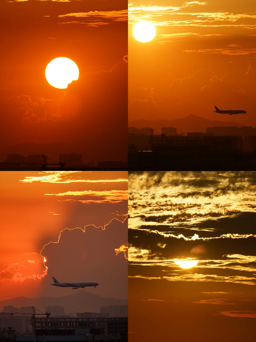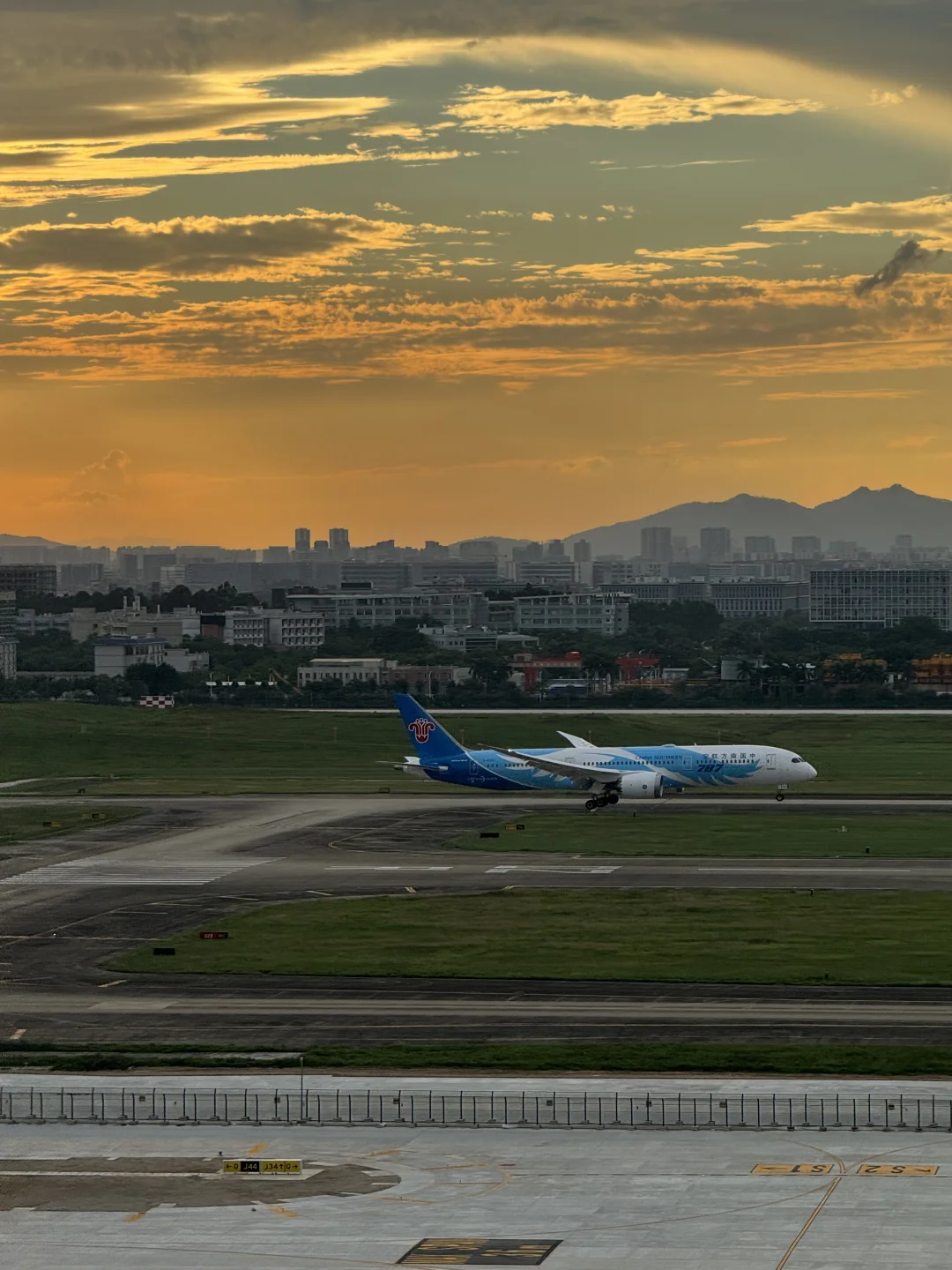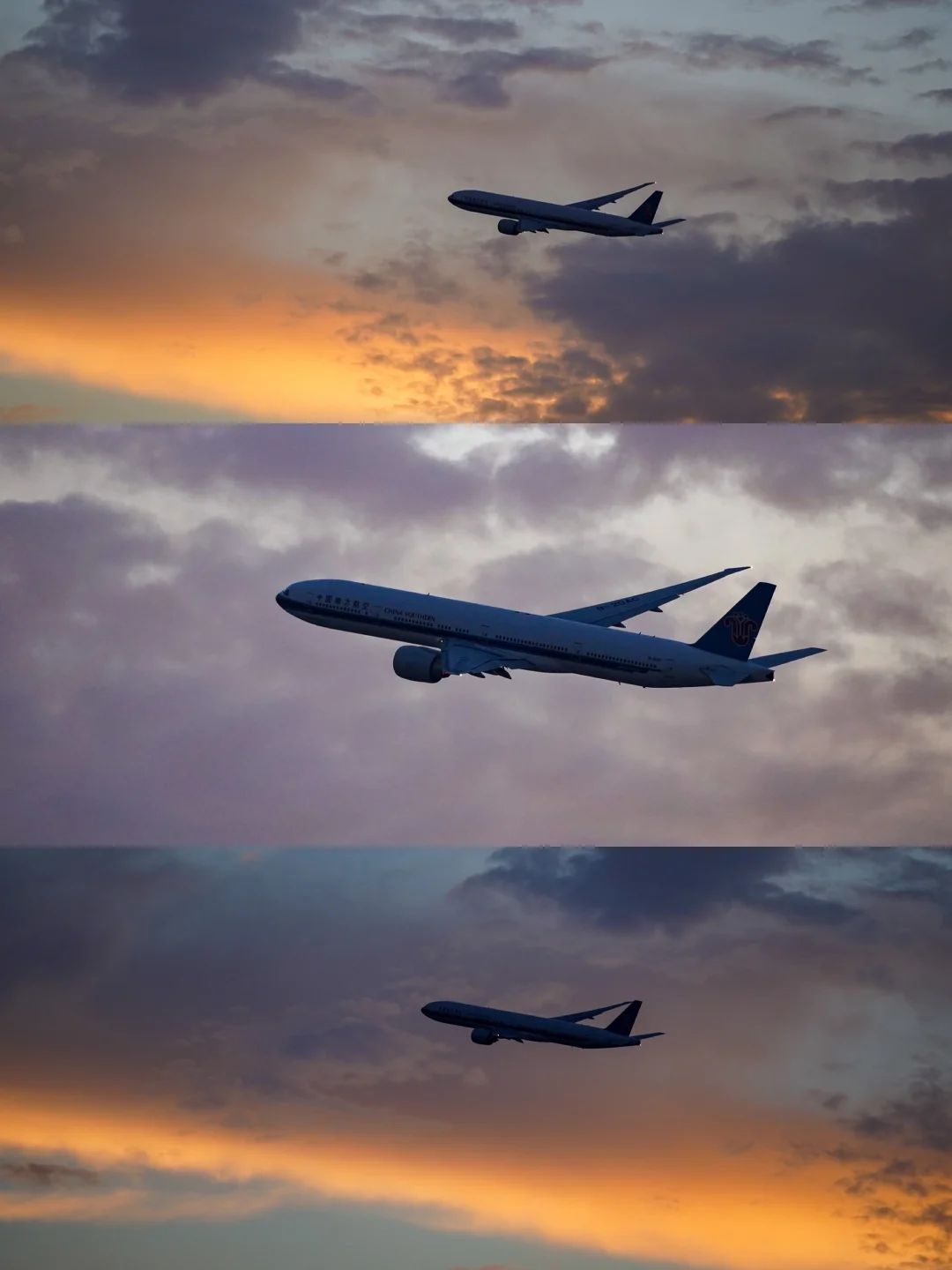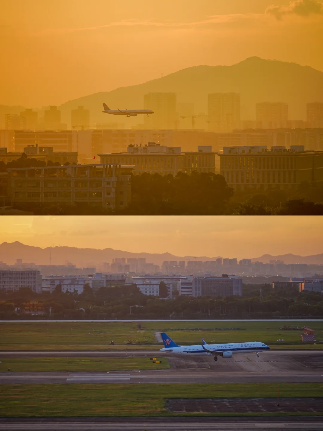 今天分享一组在T3拍到的飞机、落日和晚霞