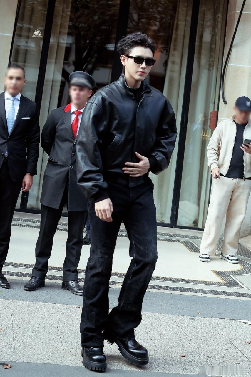 陈飞宇嘴角压不住了陈飞宇外媒镜头 阿瑟在巴黎秀场以All Black造型亮相,墨镜下的轮廓深邃迷人,生图能打颜值爆表,挺拔身姿长腿傲人,嘴角上扬尽显自信风采!