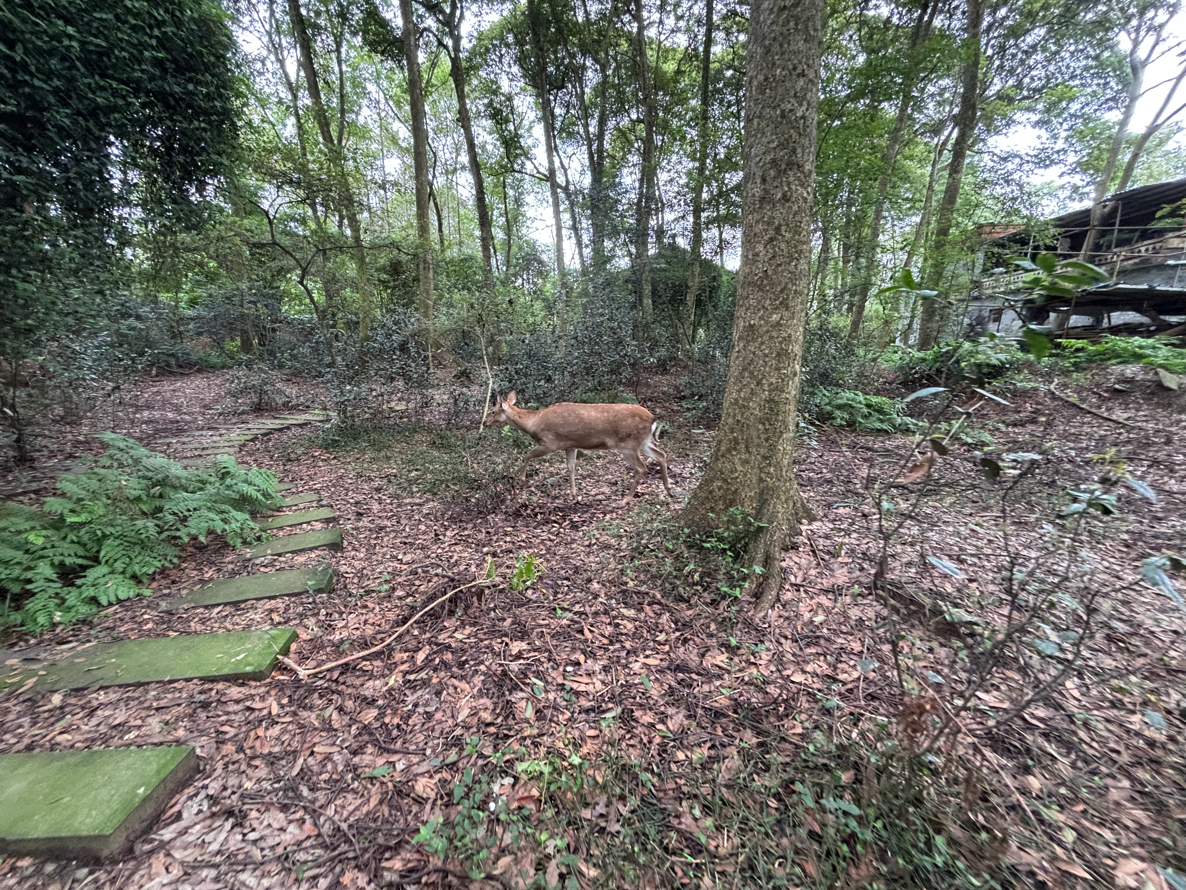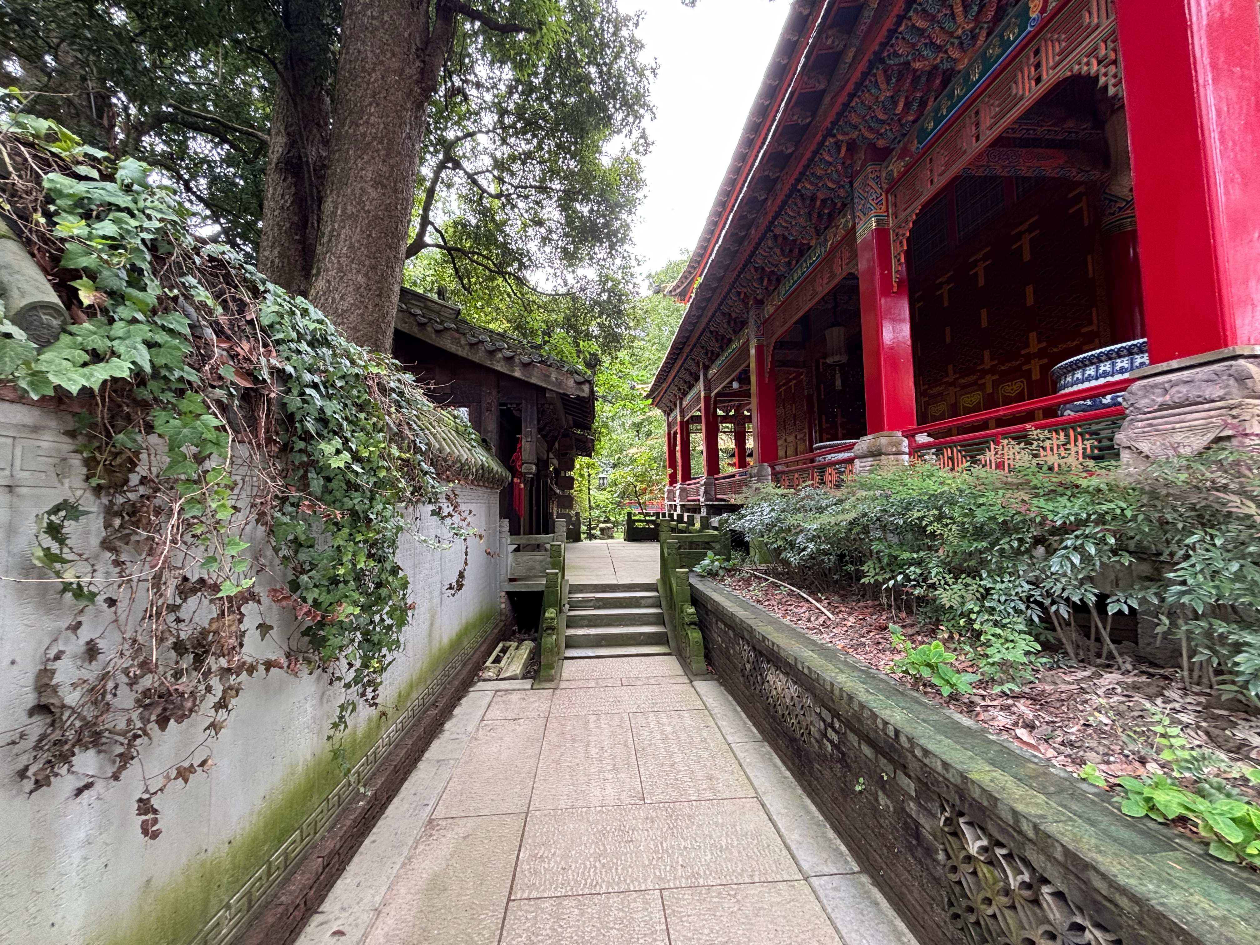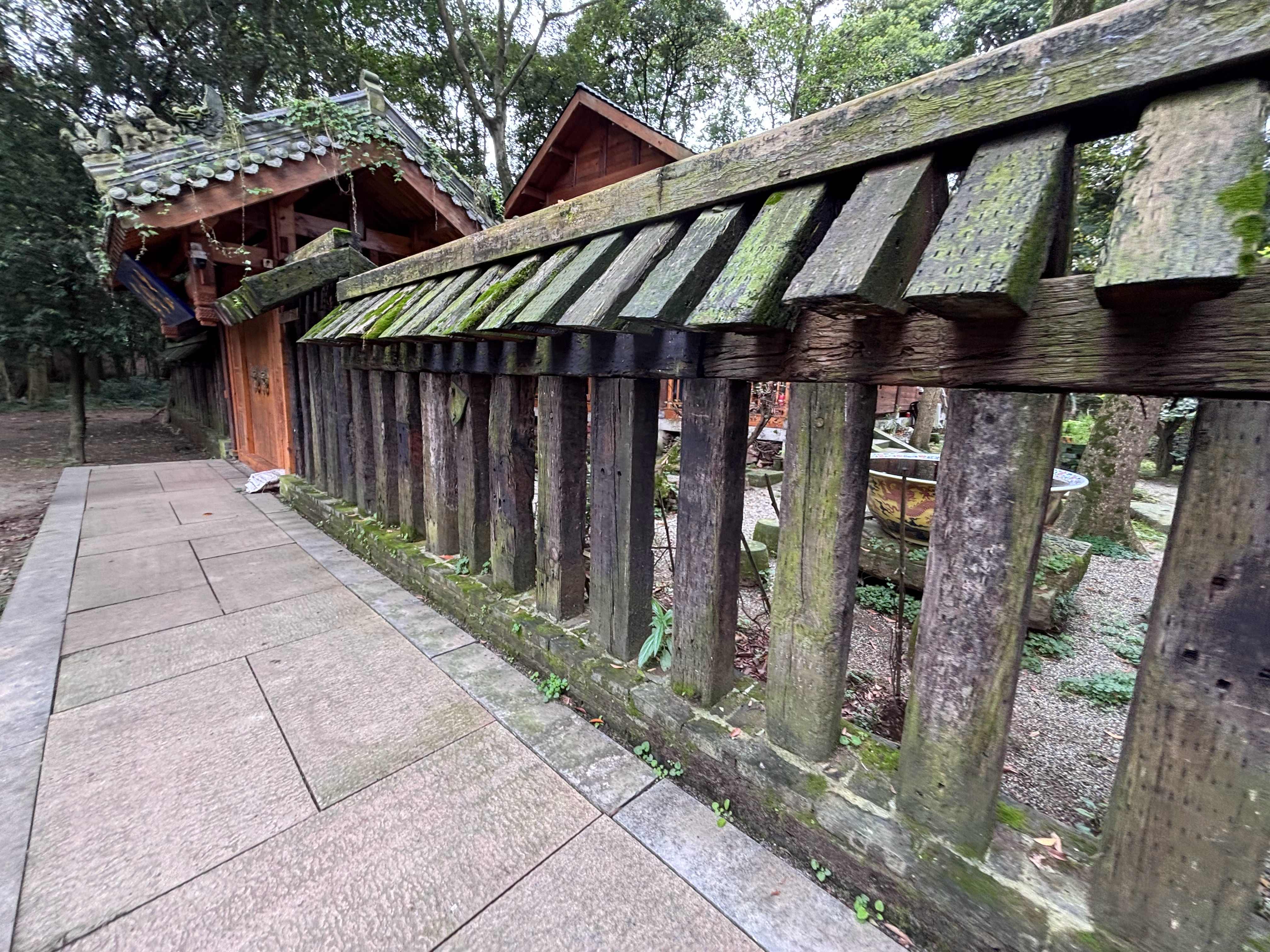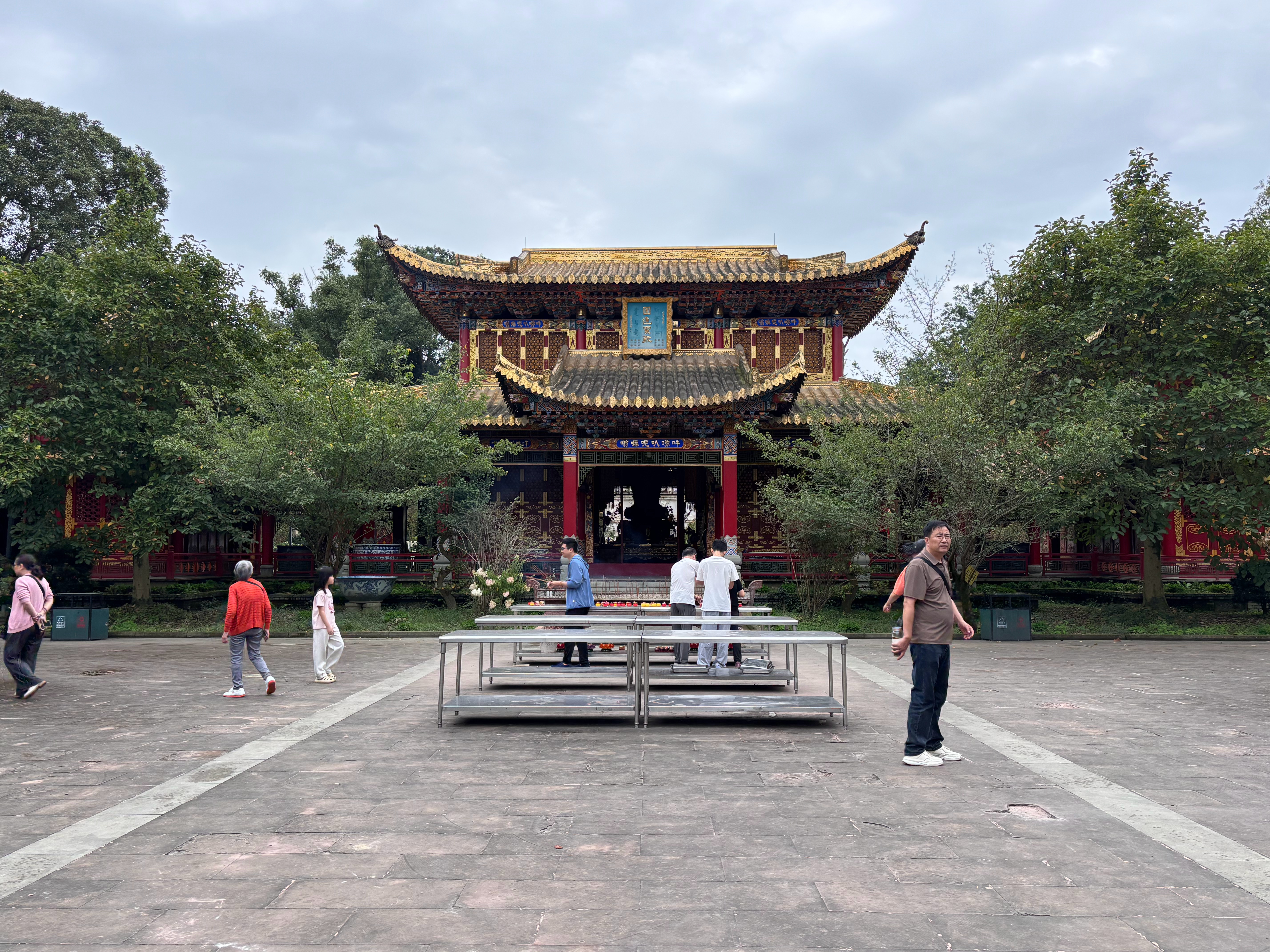 三圣寺,位于彭州境内,距灌县很近。寺庙历史悠久,据传乃三国时张松的住宅,后建为寺。该寺中养有梅花鹿,且有一日式风格建筑,状与日本奈良公园有名的古寺大华严寺同。寺中古树楠木多,寺旁一棵楠木树标注已有1500余年历史,传为张松夫妇所栽,挺拔苍郁,千年之树伴千年之寺,仿佛闹市中一静地。
