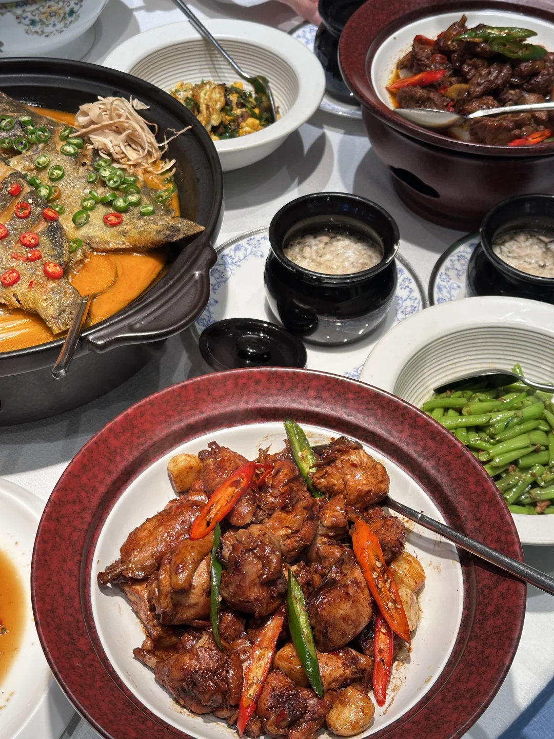 一进门就被竹林包围了,层层叠叠的竹林和三角梅开得热烈又奔放,拍照真的巨出片,氛围感直接拉满🎋 在这里,你可以和朋友一起在绝美庭院里吃饭喝茶,欣赏美景,感觉时间都慢下来了🍵 菜品也完全没让人失望,臭鳜鱼是每次必点的经典,江西拌粉也好吃到让人眼前一亮,每道菜都色香味俱全🐟 室内环境同样幽静,小包间私密又舒适~和姐妹约会来最合适不过咯~